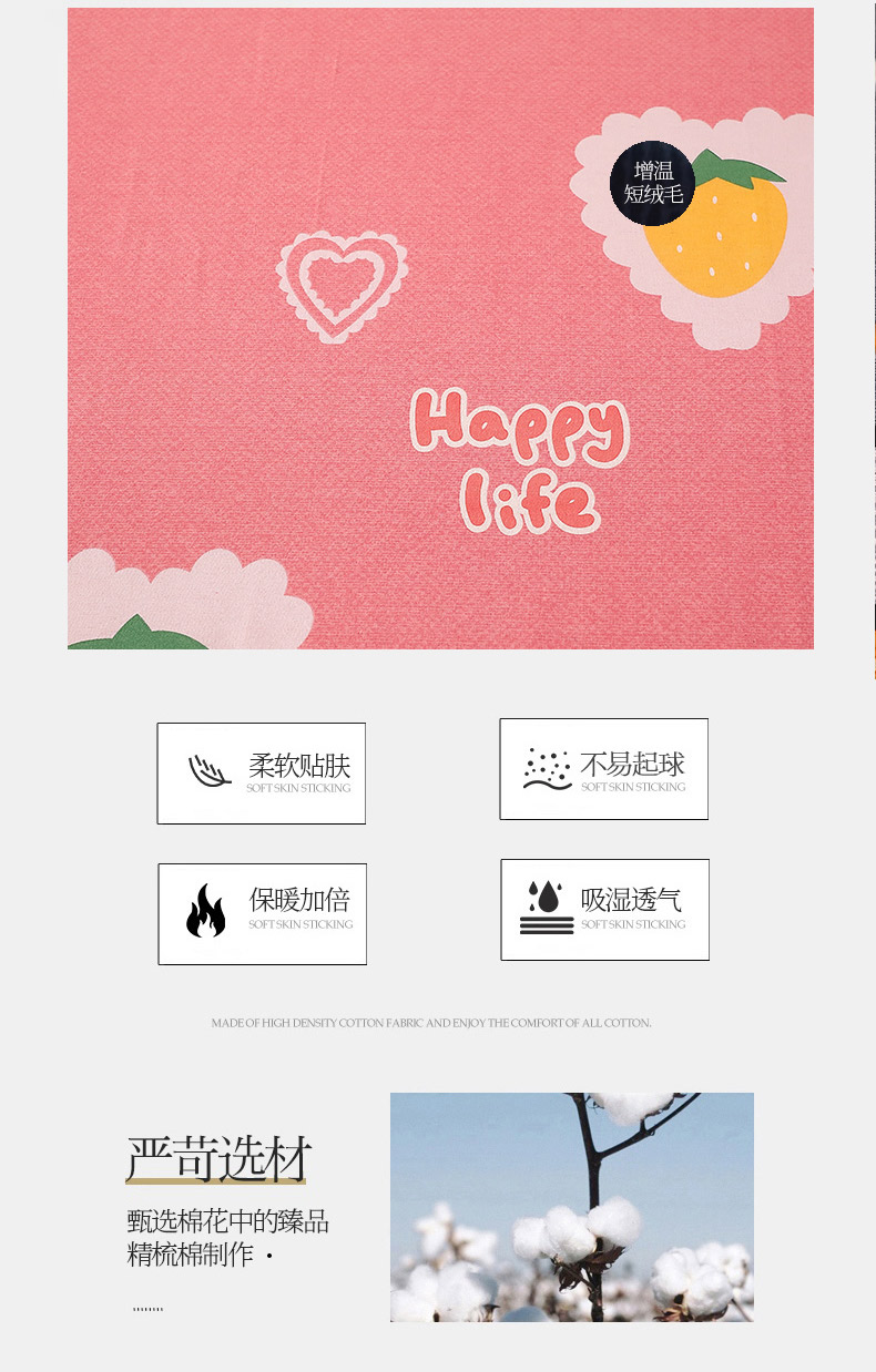 晶缦家纺 2024新款典雅系-全棉活性磨毛多规格单品床单 草莓爱恋粉