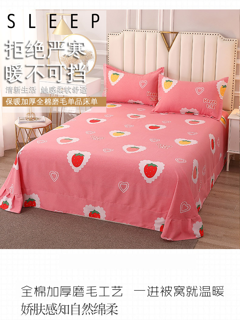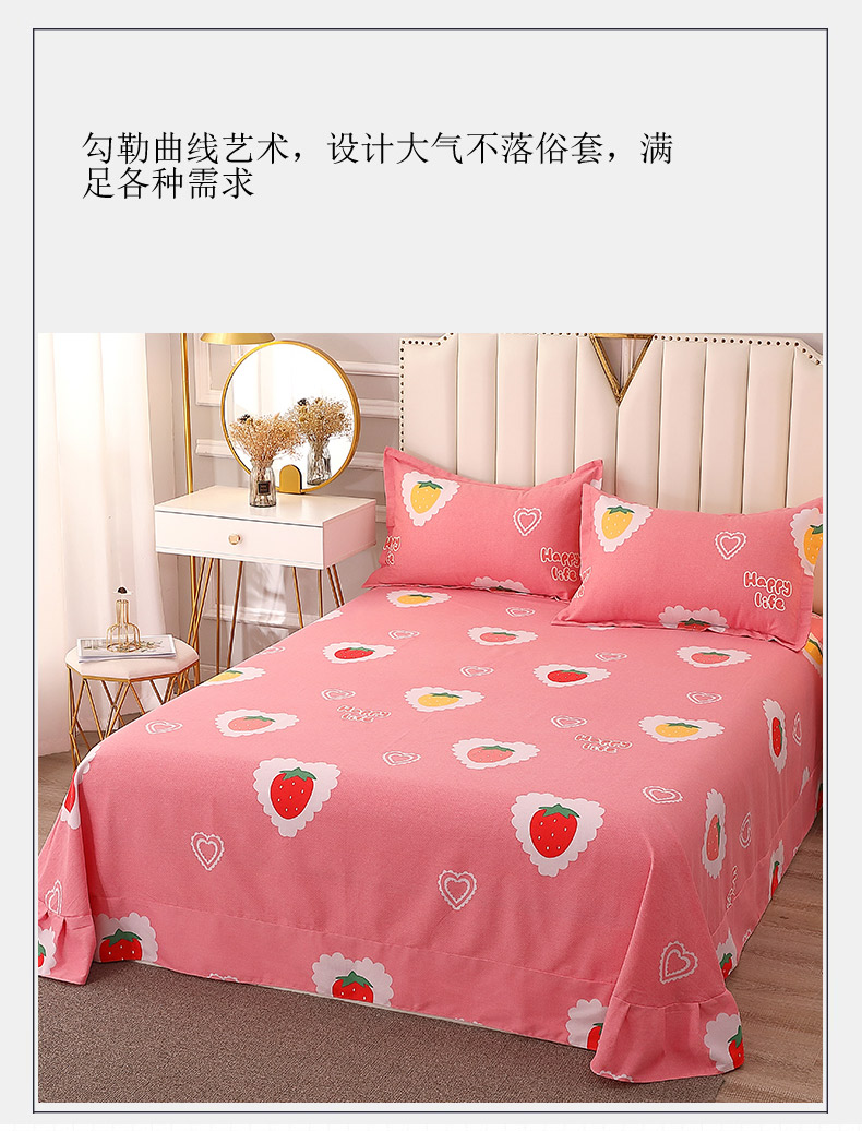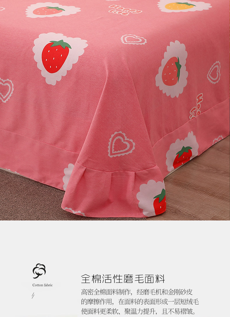 商品名称:晶缦家纺 2024新款典雅系-全棉活性磨毛多规格单品床单 草莓爱恋粉