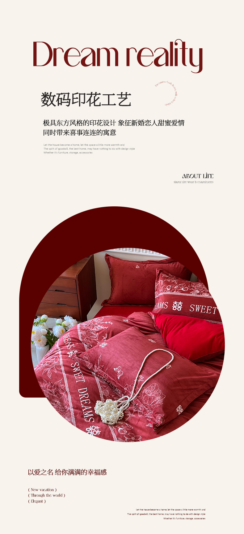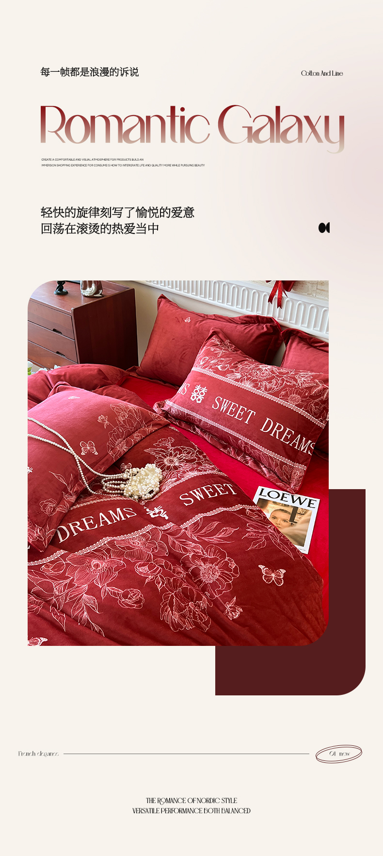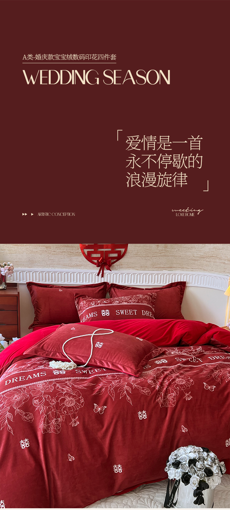 商品名称:慕希家纺 2024新款A类婚庆款宝宝绒数码印花四件套 一生挚爱