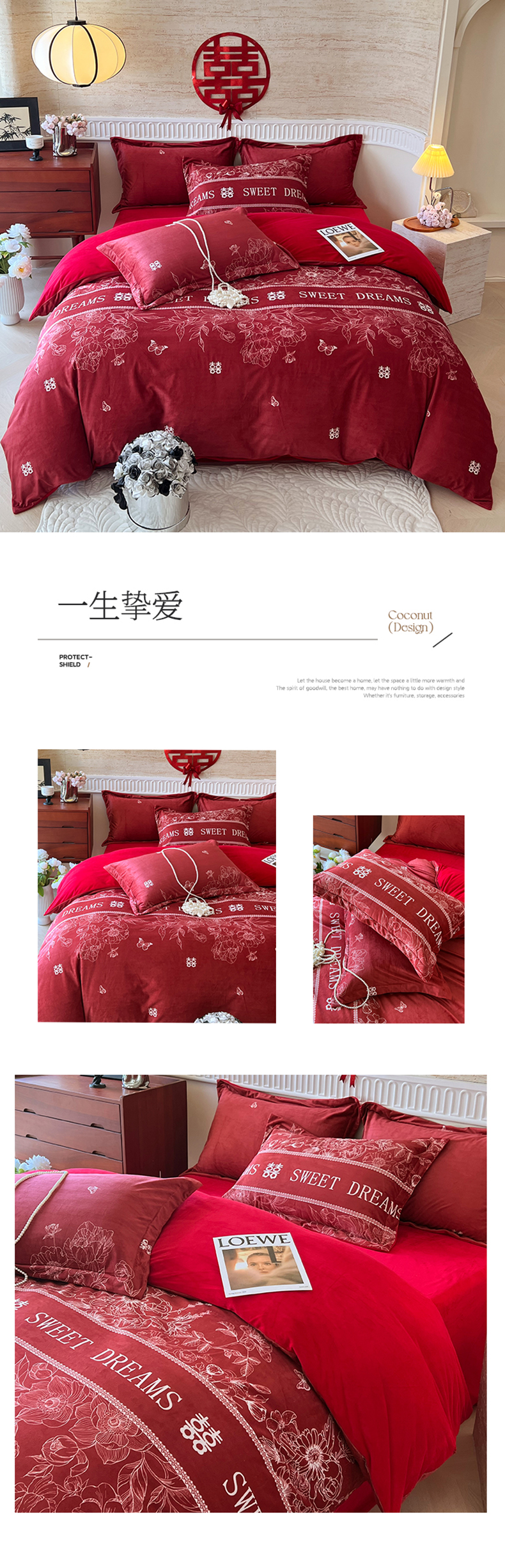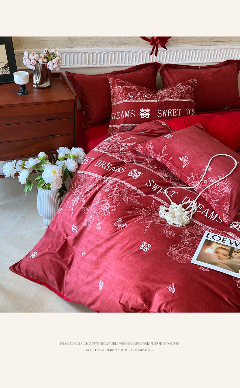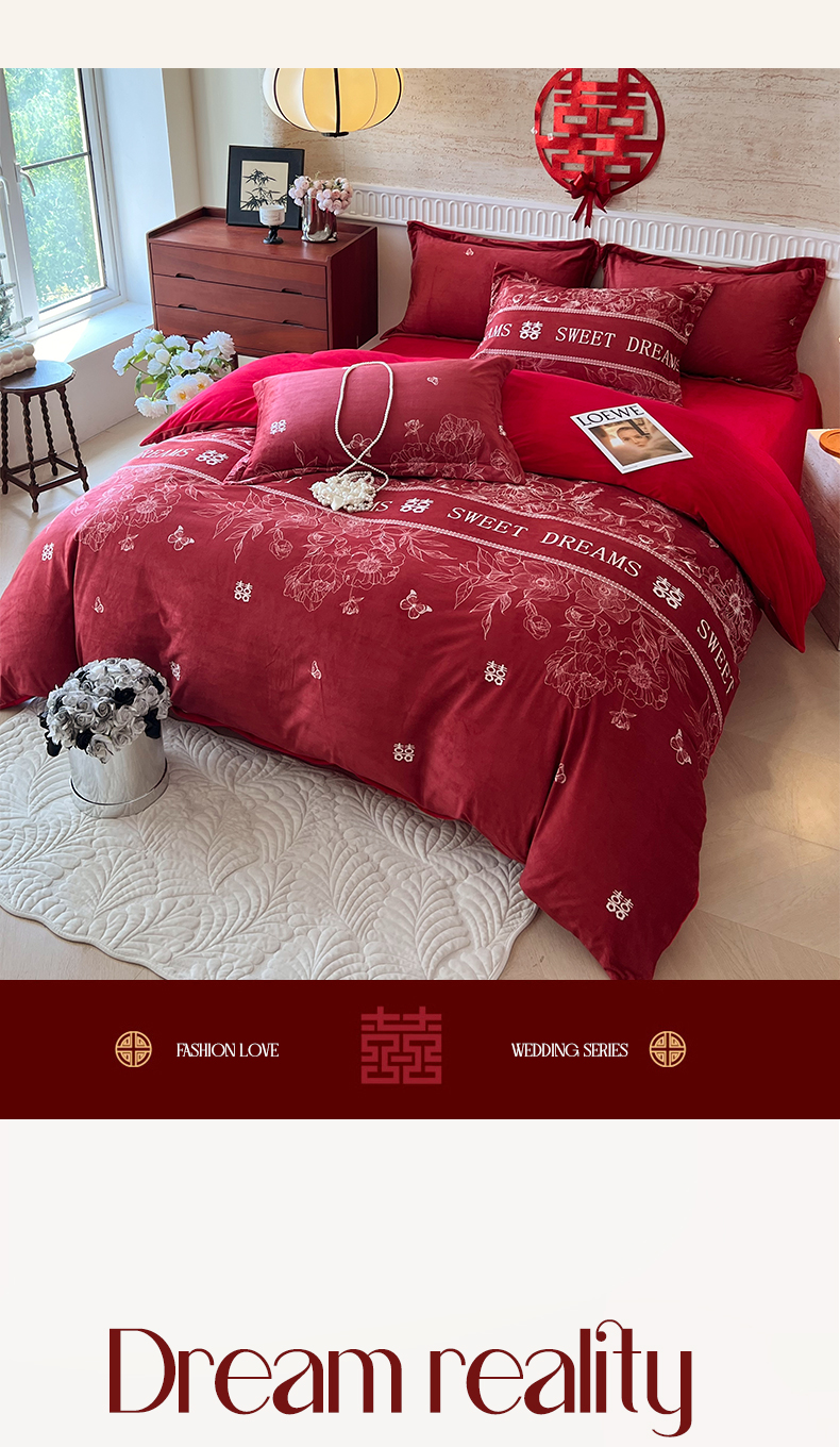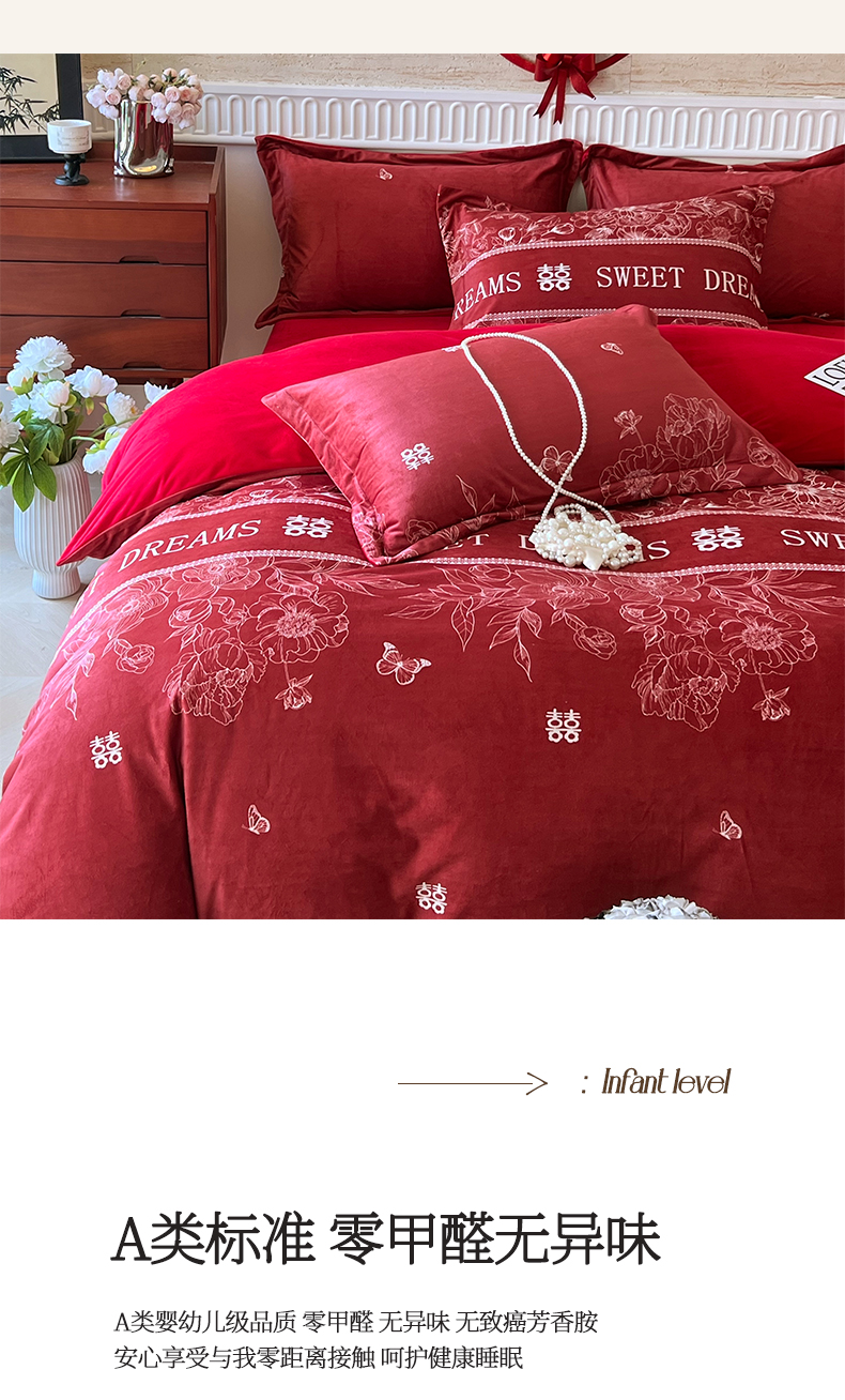 (总)慕希家纺 2025新款婴儿绒婚庆刺绣四件套,吾家有喜,永结同心