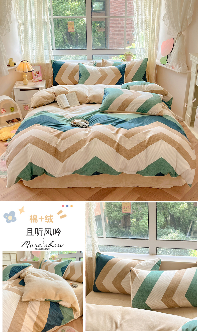当前位置: 91家纺网 > 商品网购 > 床品套件 > 四件套 > 牛奶绒四件套 > 麦伦家居 2024秋冬新品 多功能床品全棉+牛奶绒四件套 且听风吟