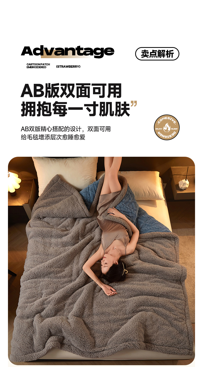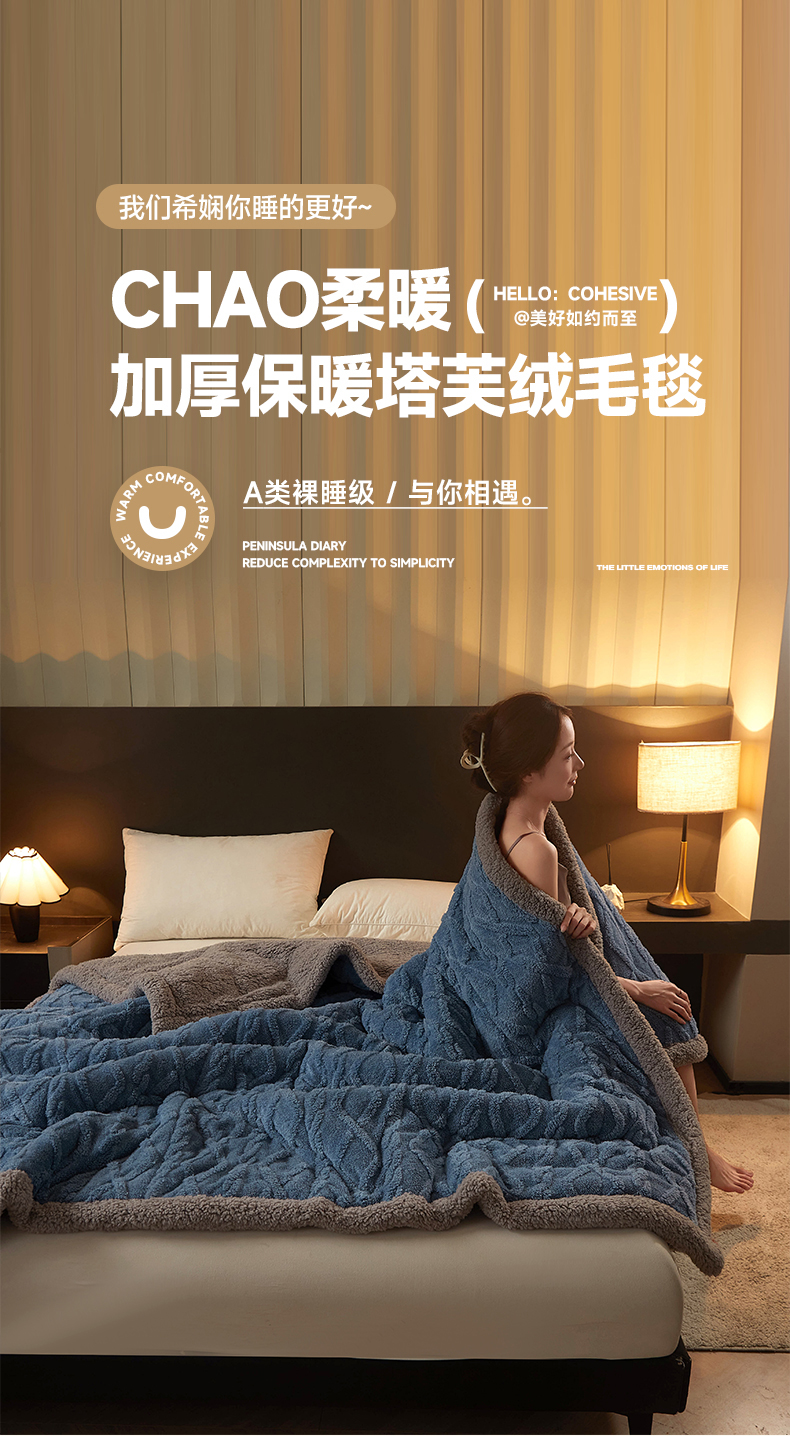 (总)澳梵家居 2024新款三层夹棉加厚塔肤绒毛毯-场景二