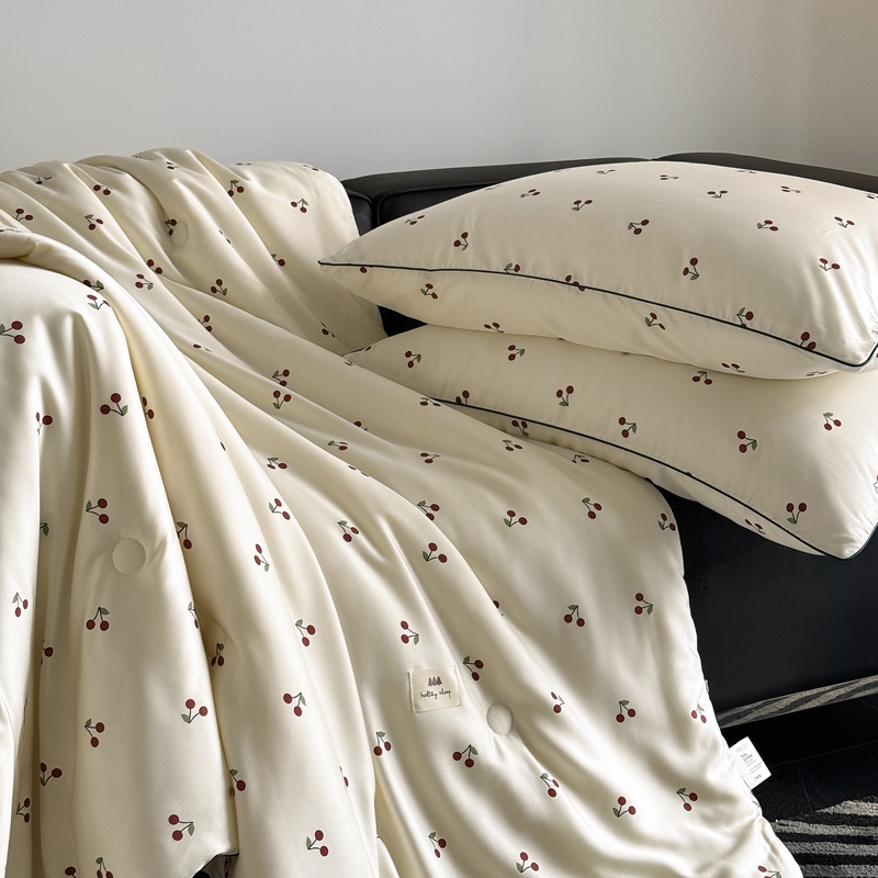 (总)汇庭 2025新款秋冬胖胖樱桃春秋被+樱桃菲菲床盖三件套,组合图下单仅供展示不可下单,粉色,绿色,米色
