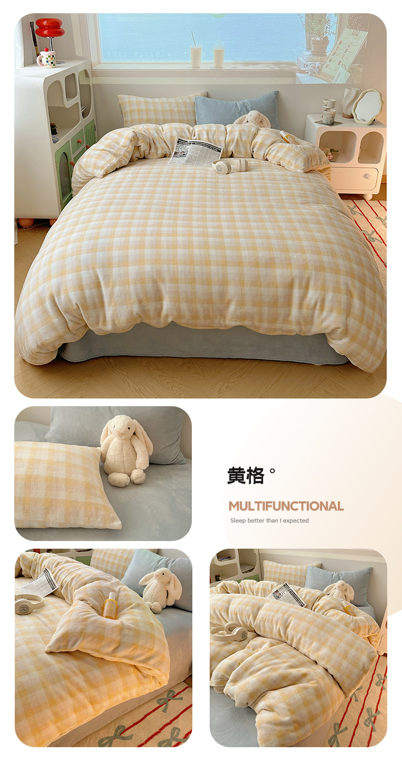 美乐迪家纺 2024新款牛奶绒格子四件套系列 黄格
