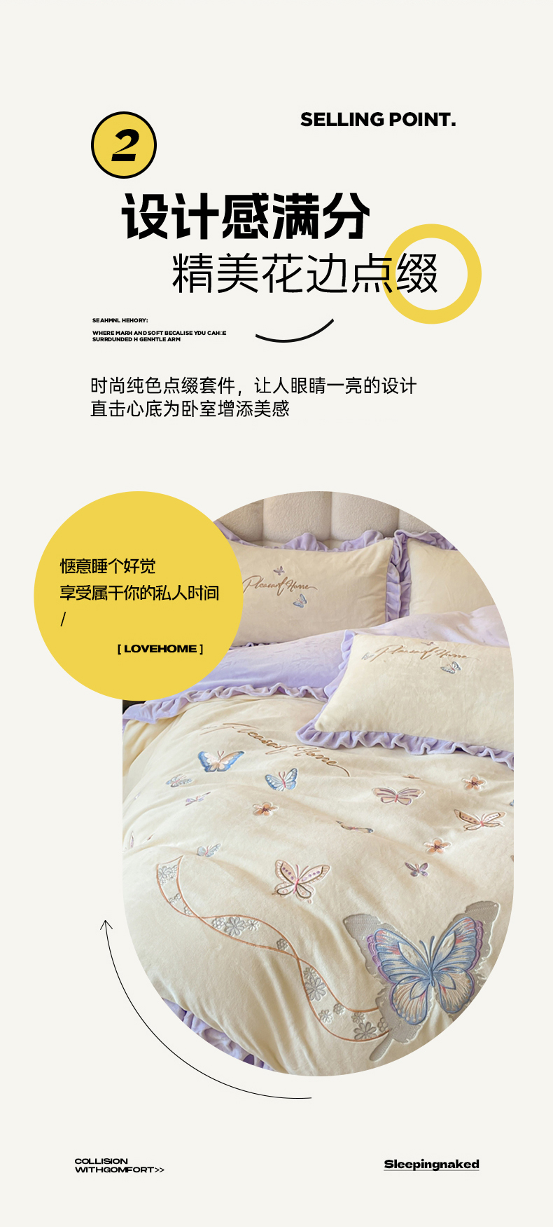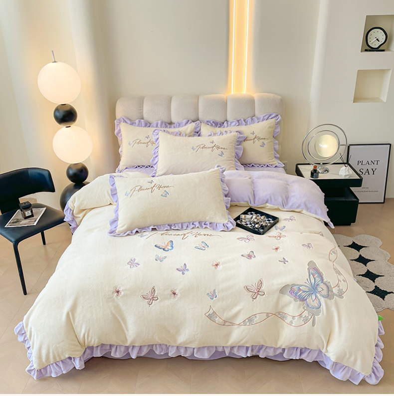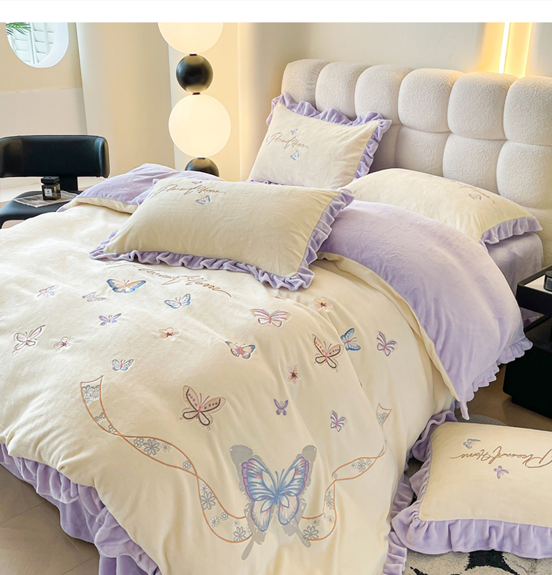 金窝窝家纺 2024新款牛奶绒刺绣四件套-蝴蝶纷飞 蝴蝶纷飞-AB版紫