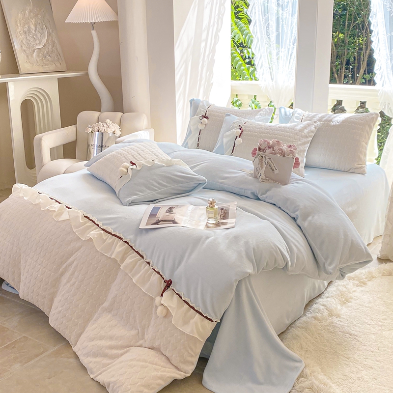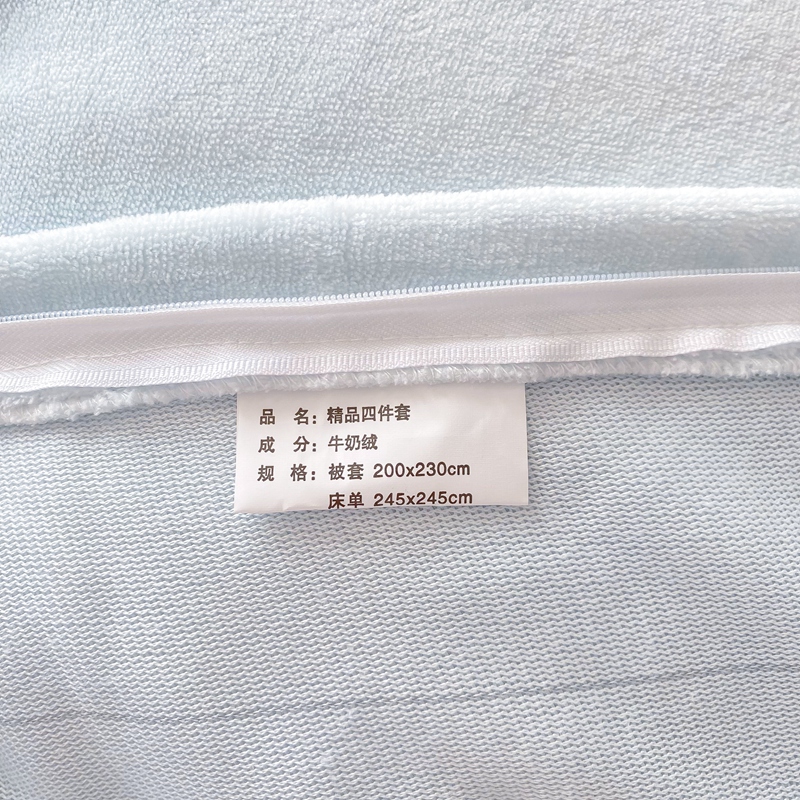 商品名称:二八年华 2024新款拿铁系列小香风牛奶绒四件套 拿铁-水蓝