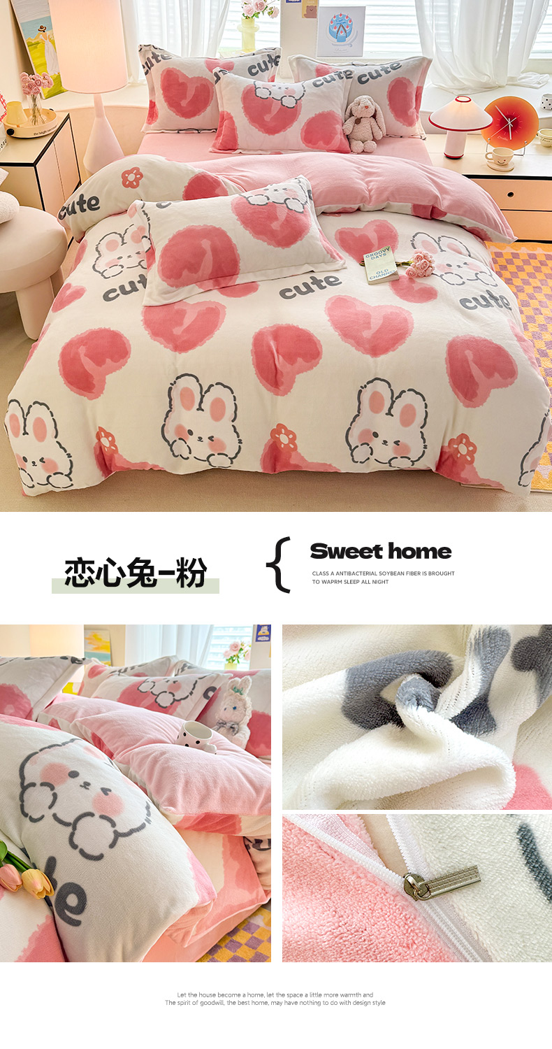 商品名称:逸尚阁 2024新款牛奶绒卡通印花单被套 恋心兔-粉