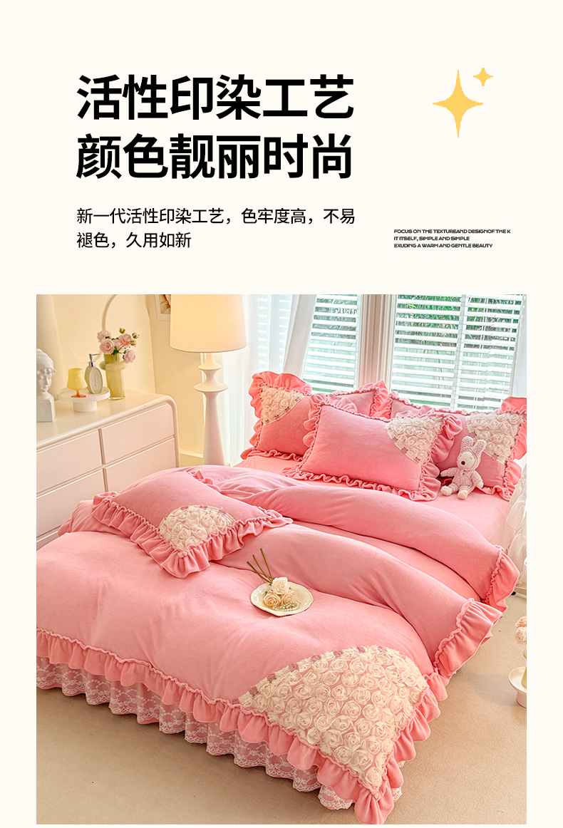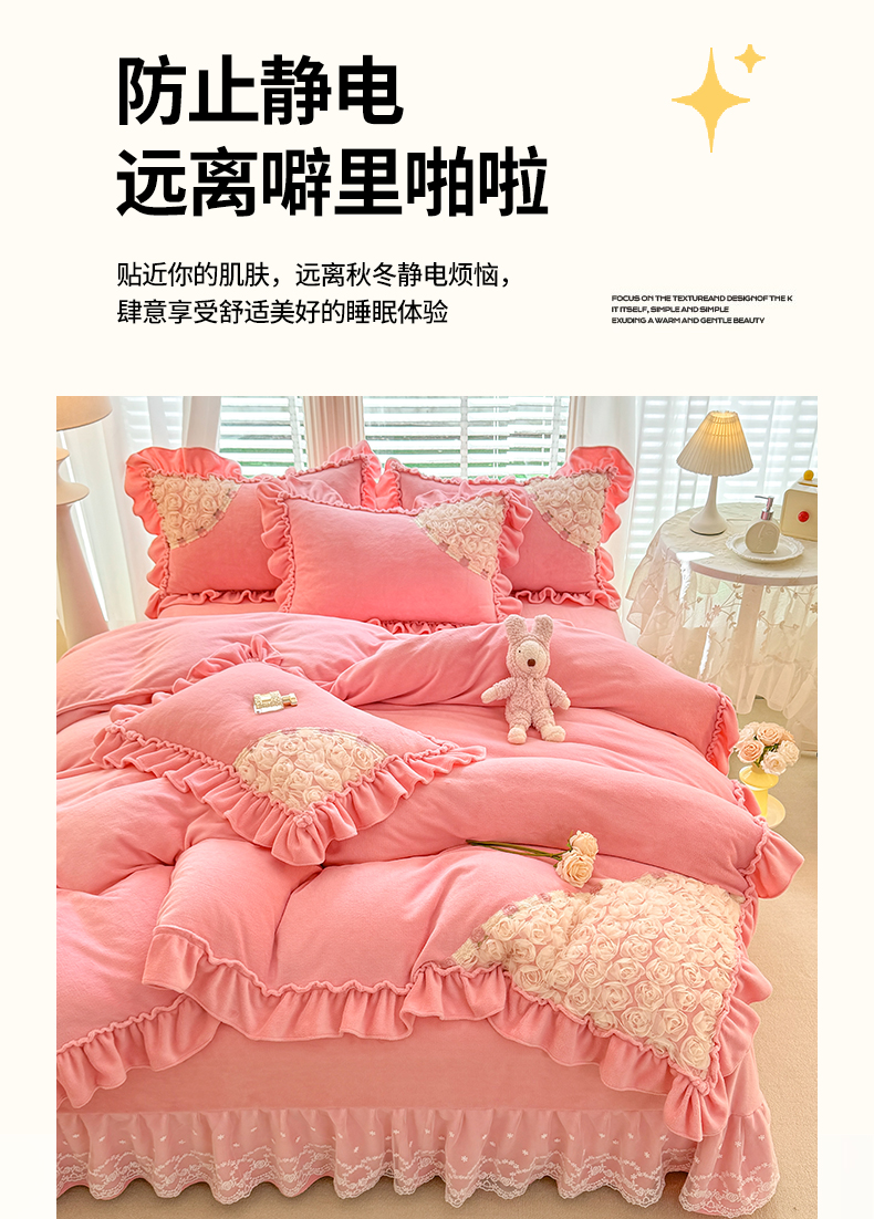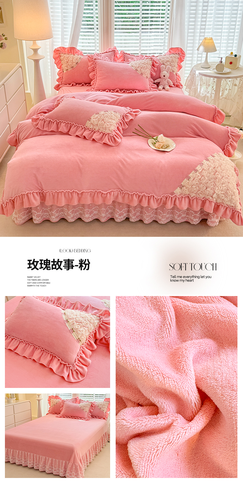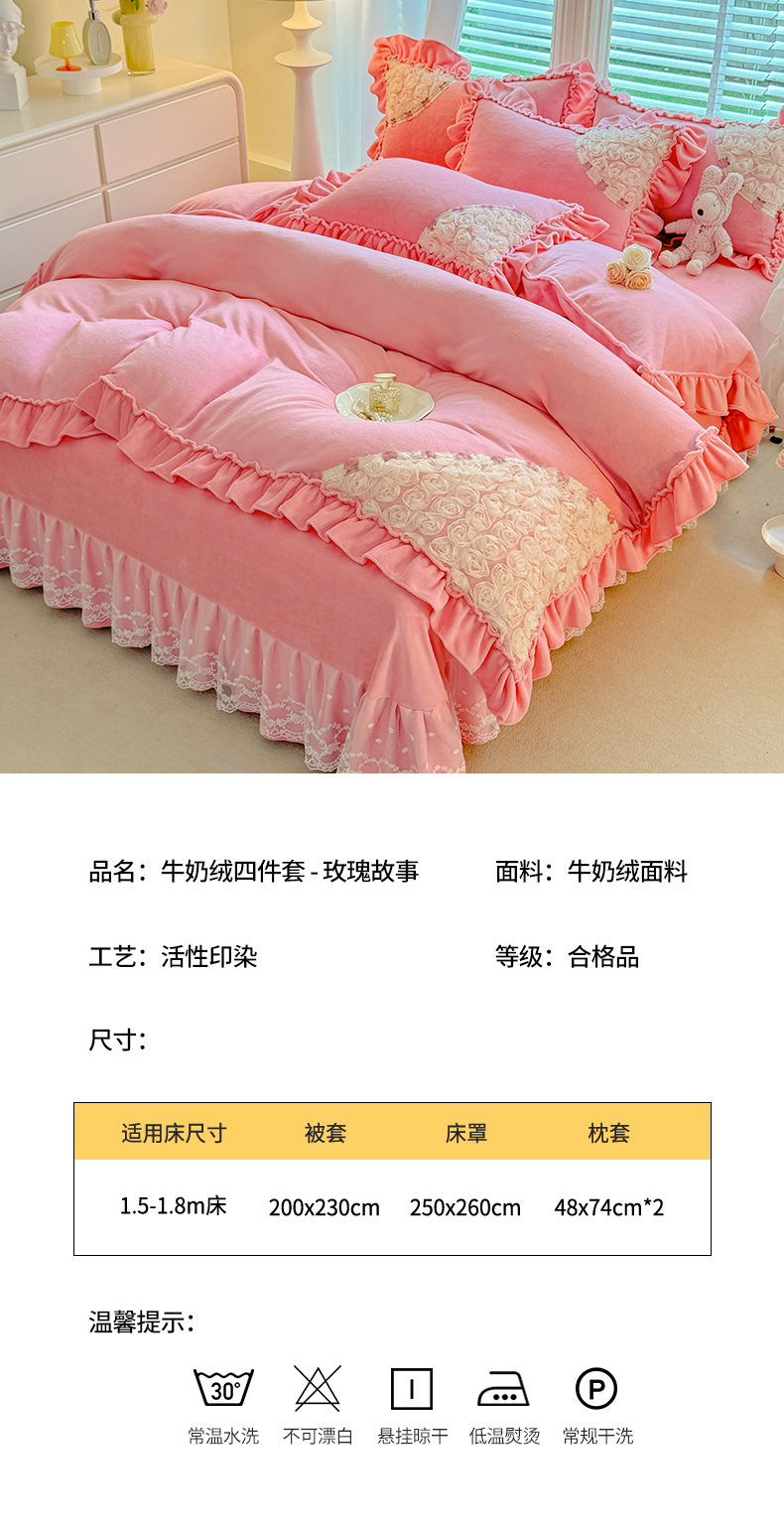 芭比蔓家纺 2024新款牛奶绒四件套-玫瑰故事 玫瑰故事-粉