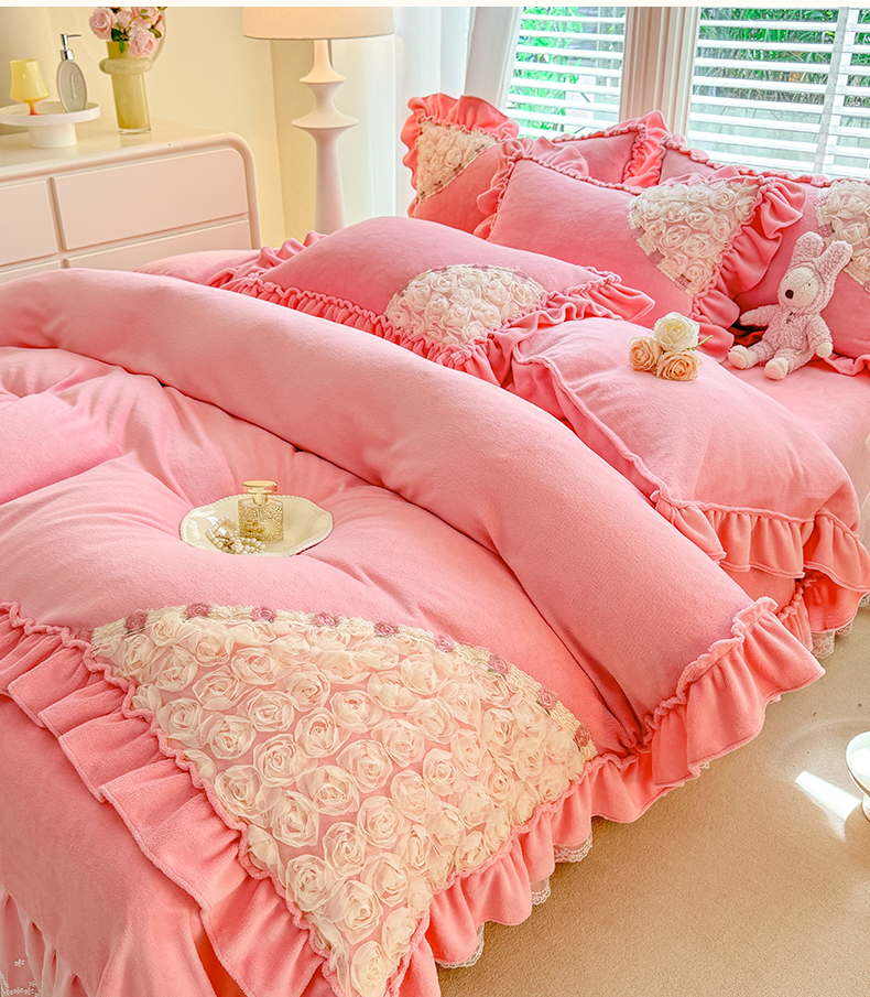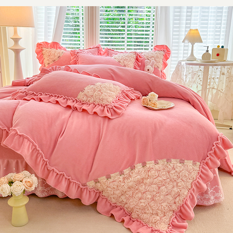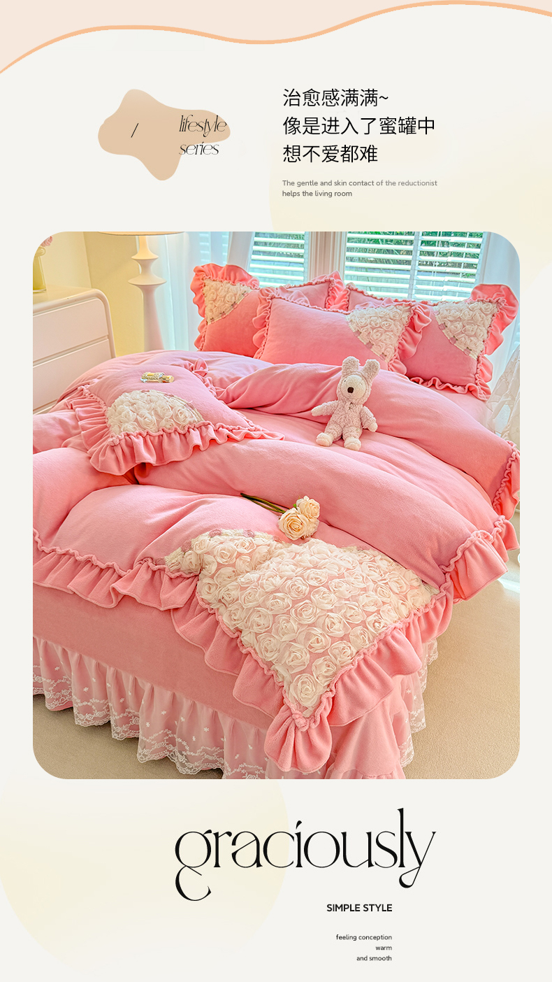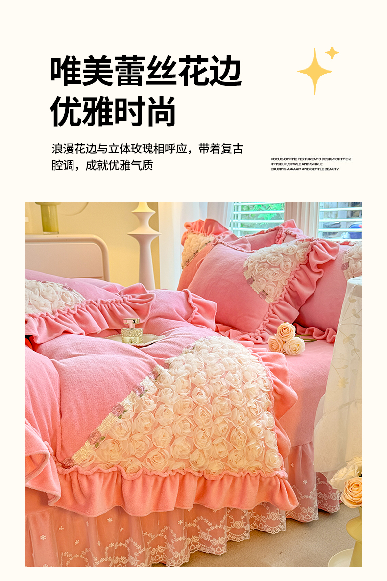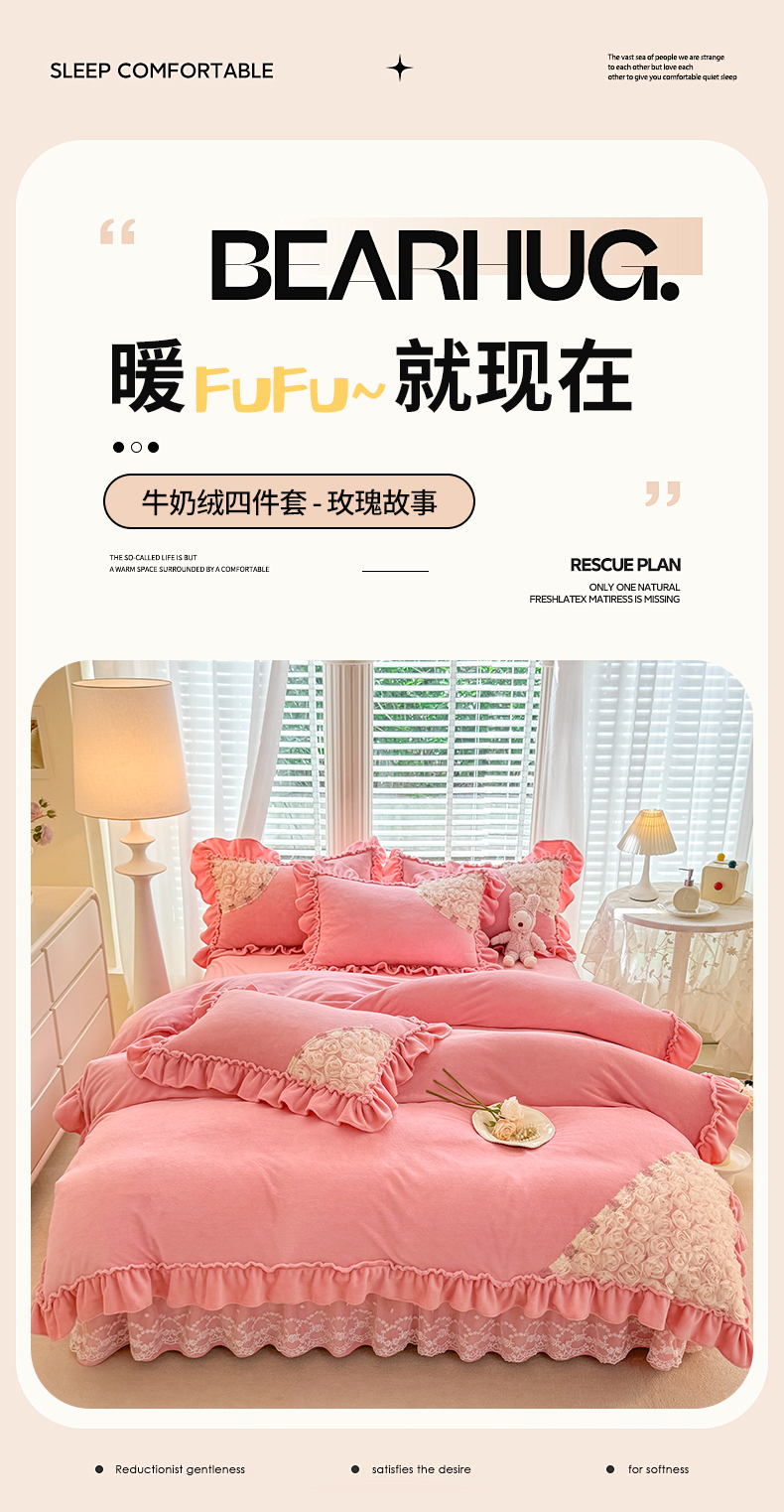 芭比蔓家纺 2024新款牛奶绒四件套-玫瑰故事 玫瑰故事-粉