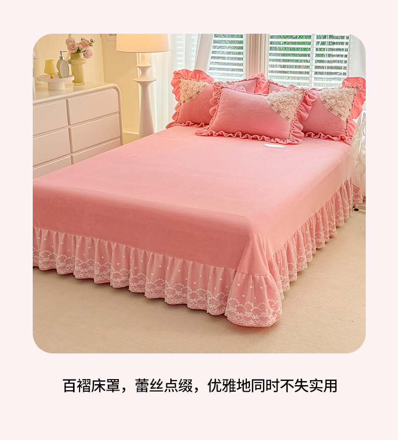 (总)芭比蔓 2024新款直播供货韩版花边款牛奶绒四件套,爱玛橙,宝石红,湖蓝,倾国粉,秋月黄,深灰,珍珠白,竹青绿