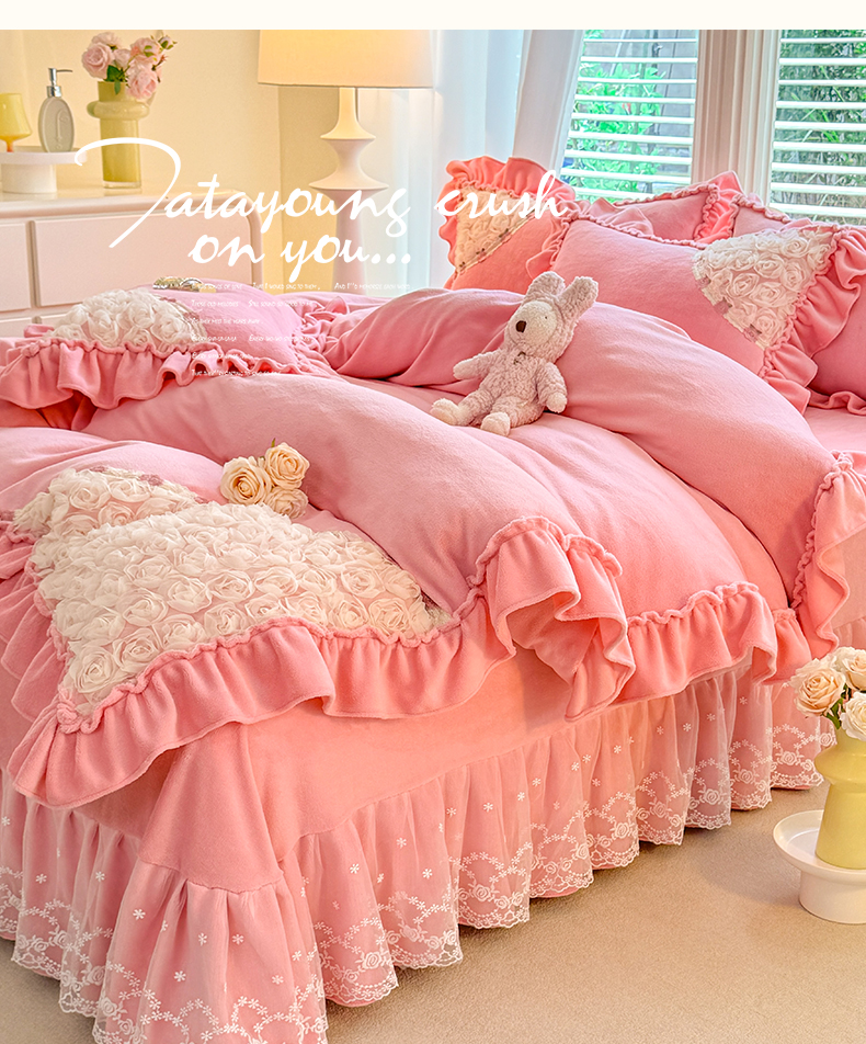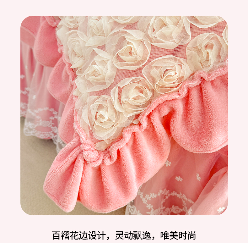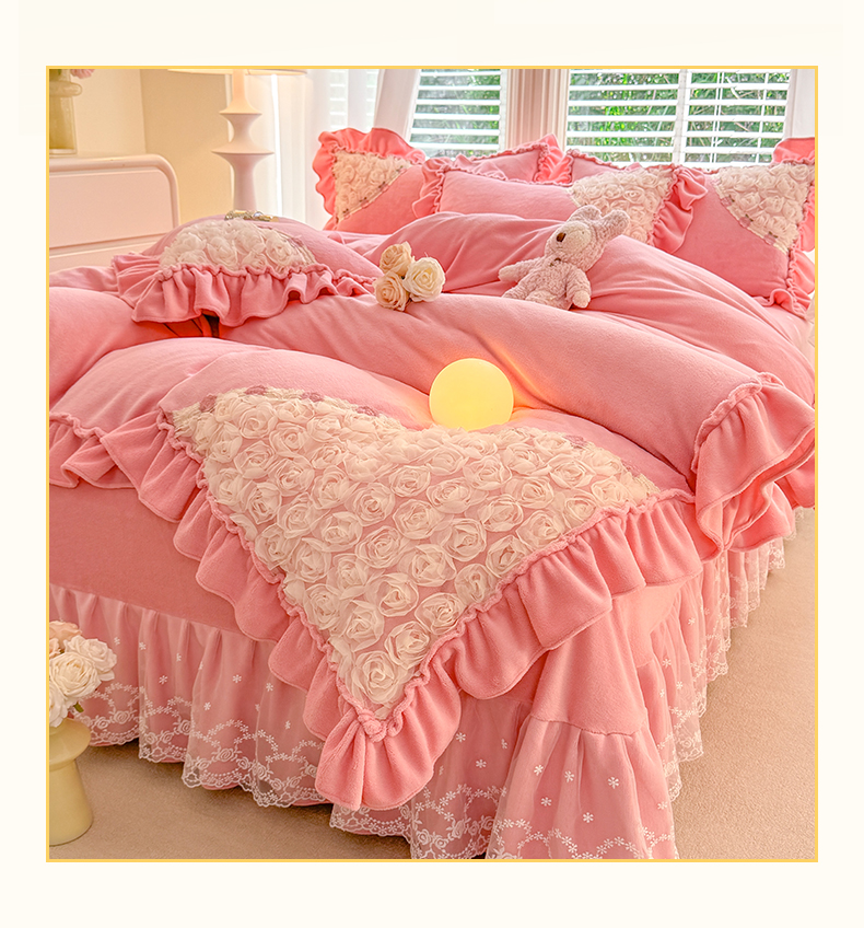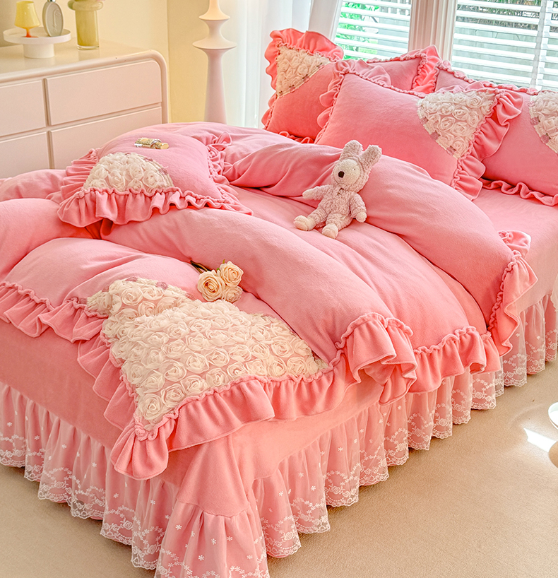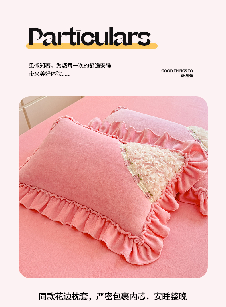 芭比蔓家纺 2025年新款雕花牛奶绒花边四件套-爱丽丝 爱丽丝-粉,爱丽丝-粉