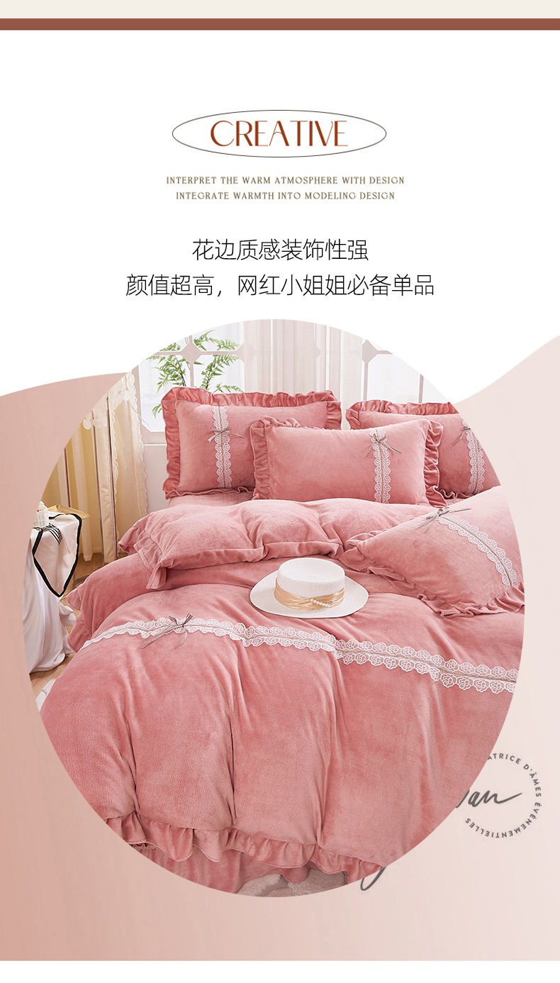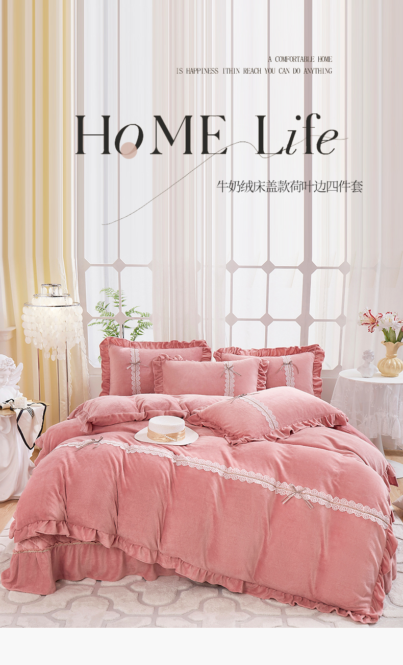 (总)卡迪亚家纺 2025新款牛奶绒床盖款荷叶边四件套-花颜,花颜-春湖绿,花颜-豆沙红,花颜-高级灰,花颜-活力蓝,花颜-魅力紫,花颜-抹茶绿,花颜-胭脂粉
