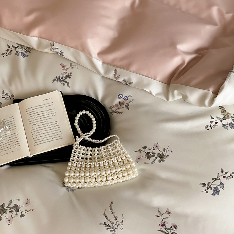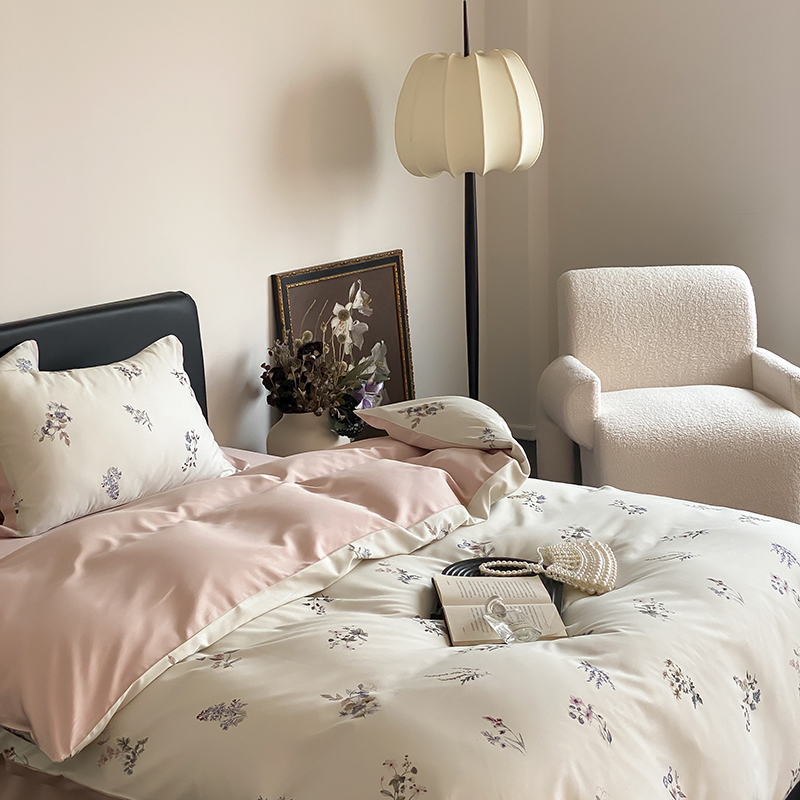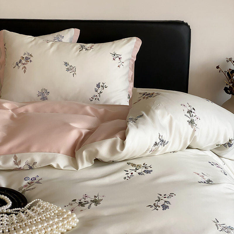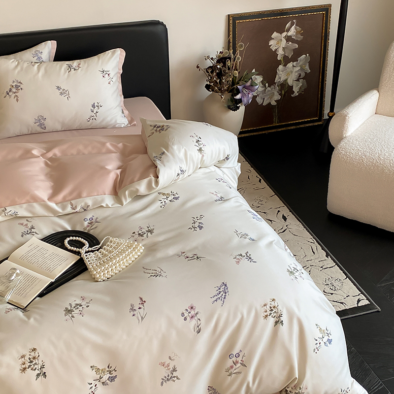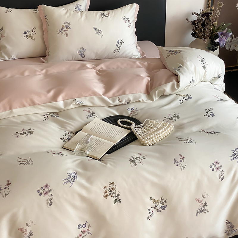 商品名称:2024新款40s加厚天丝棉磨毛印花四件套-花信 花信-米白