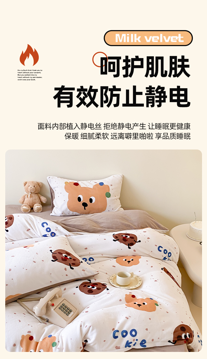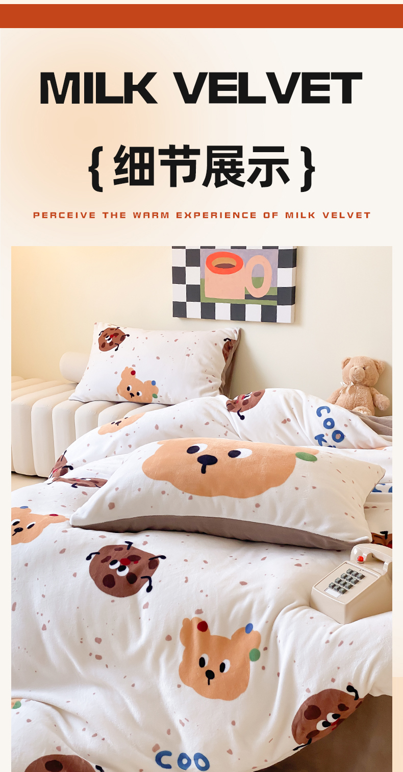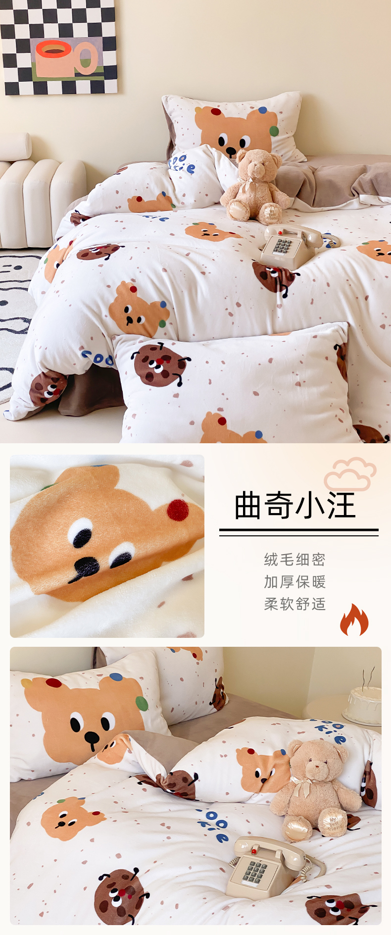 商品名称:时光里 2024新款数码印花牛奶绒四件套 曲奇小汪