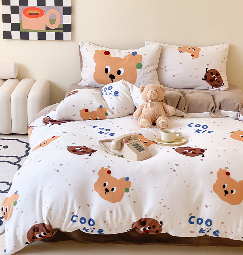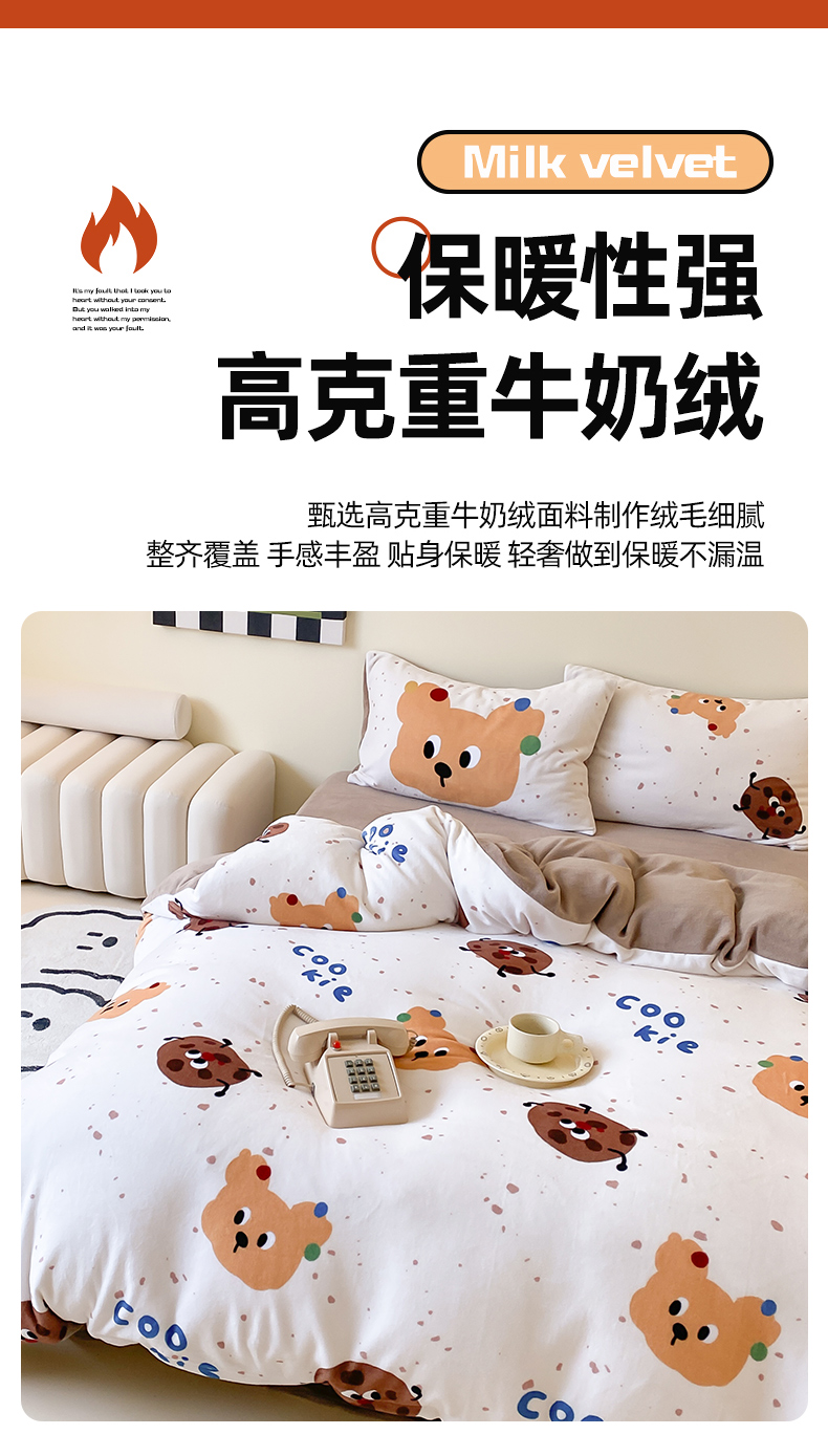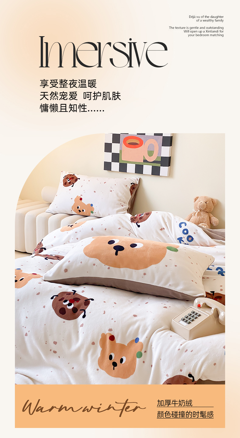 商品名称:时光里 2024新款数码印花牛奶绒四件套 曲奇小汪