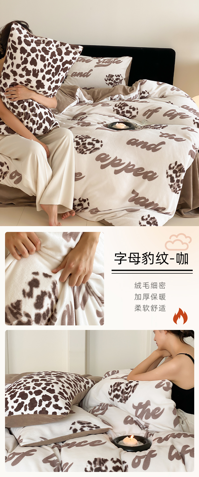 商品名称:时光里 2024新款字母豹纹牛奶绒四件套 字母豹纹-咖