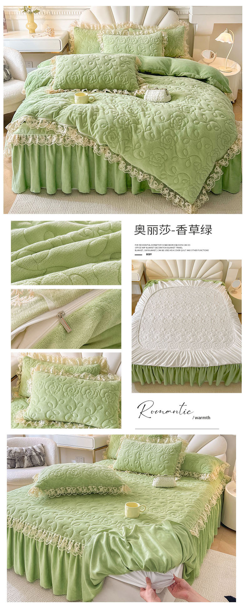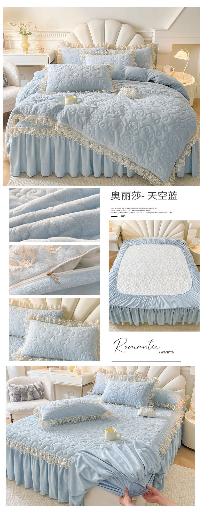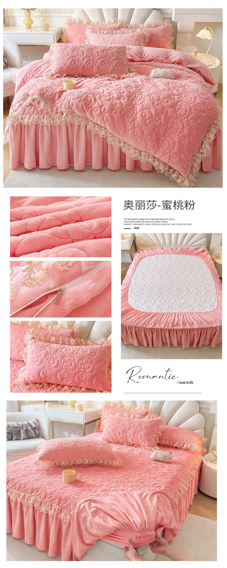 (总)恋尚 2024新款牛奶绒夹棉床笠式床裙四件套-奥丽莎
