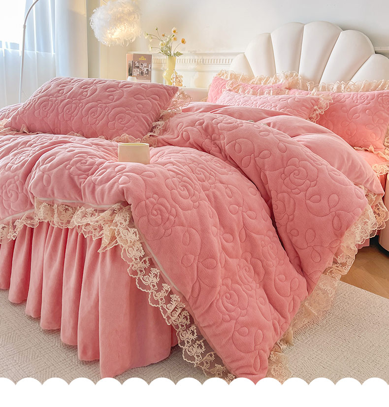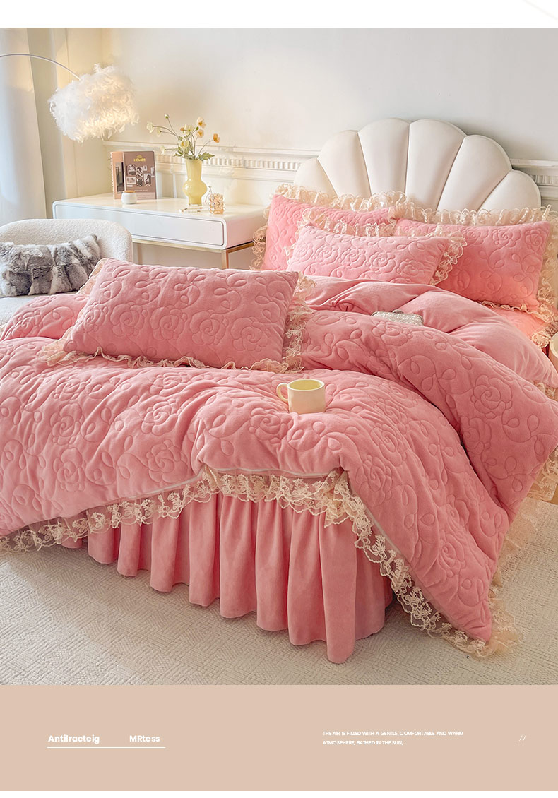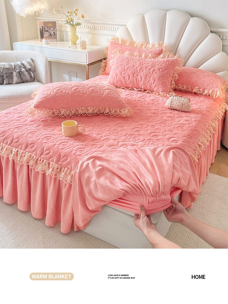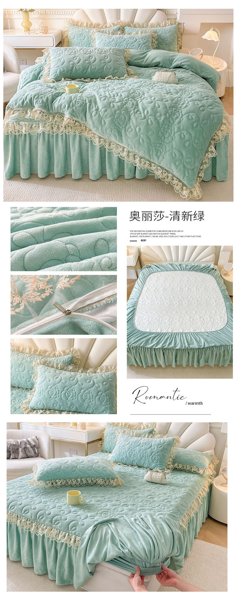 (总)恋尚 2024新款牛奶绒夹棉床笠式床裙四件套-奥丽莎