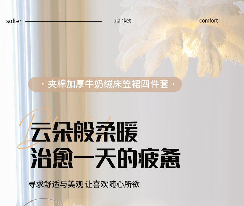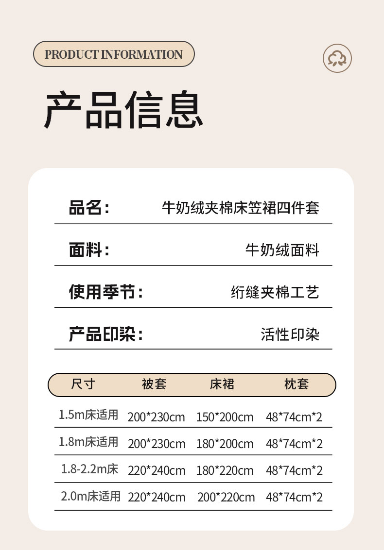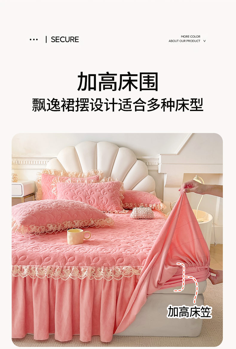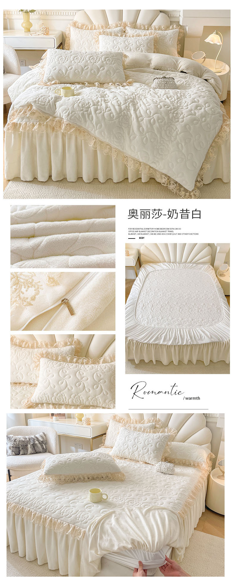 商品名称:(总)恋尚 2024新款牛奶绒夹棉床笠式床裙四件套-奥丽莎