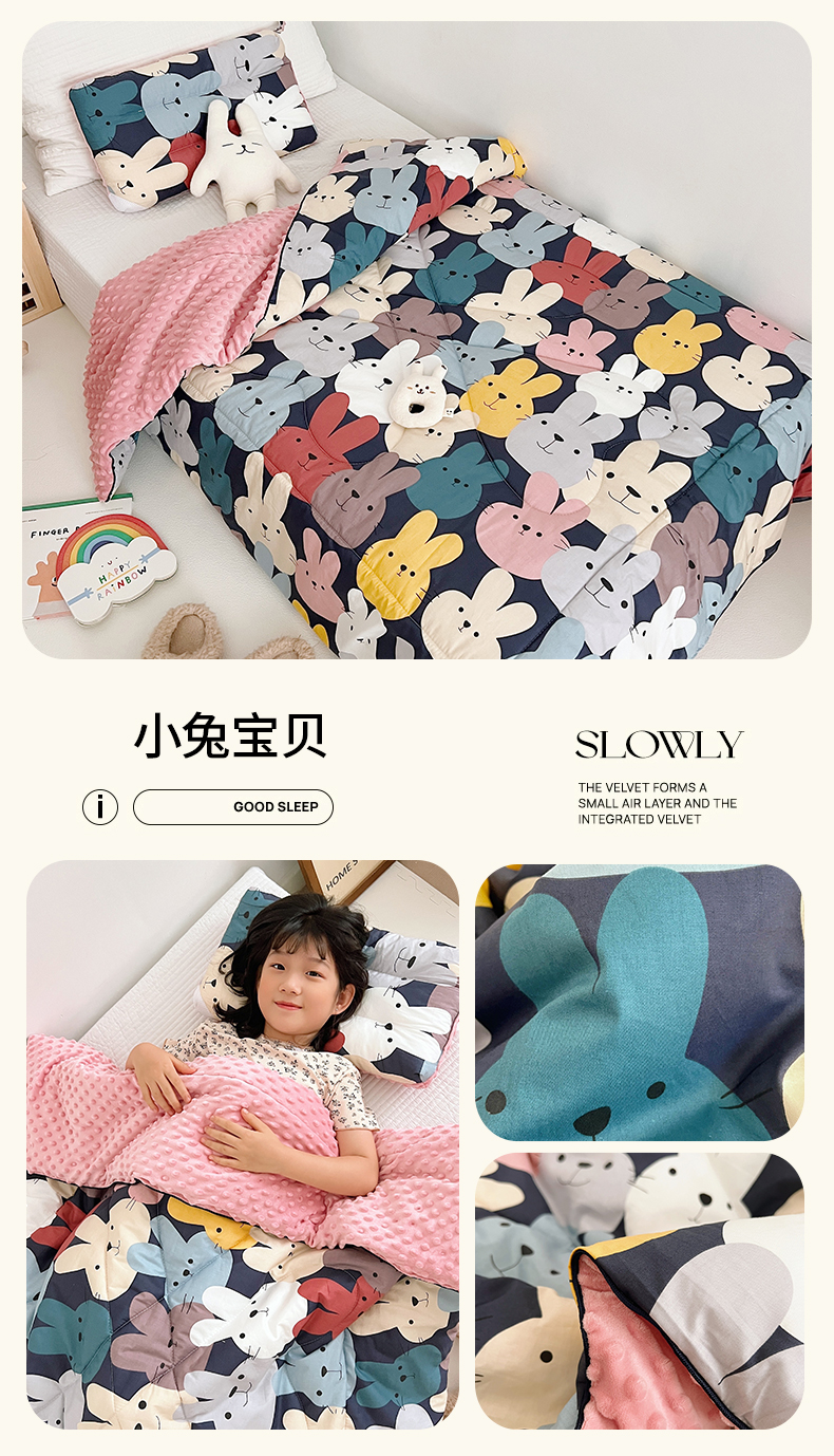 商品名称:吉咪兔 24年新款幼儿园卡通全棉豆豆被冬季纯棉儿童豆豆毯加厚棉被安抚秋冬宝宝被子 小兔宝贝