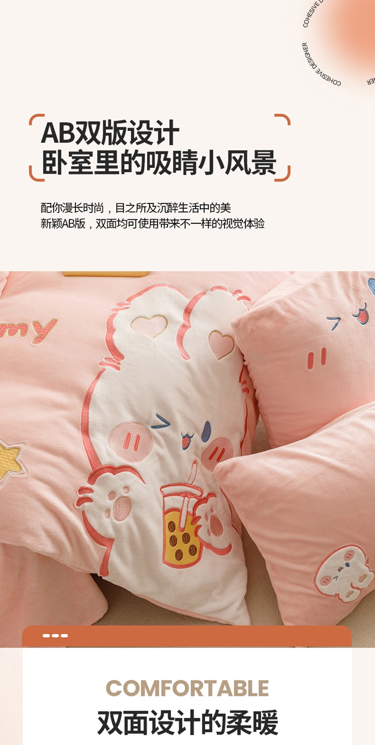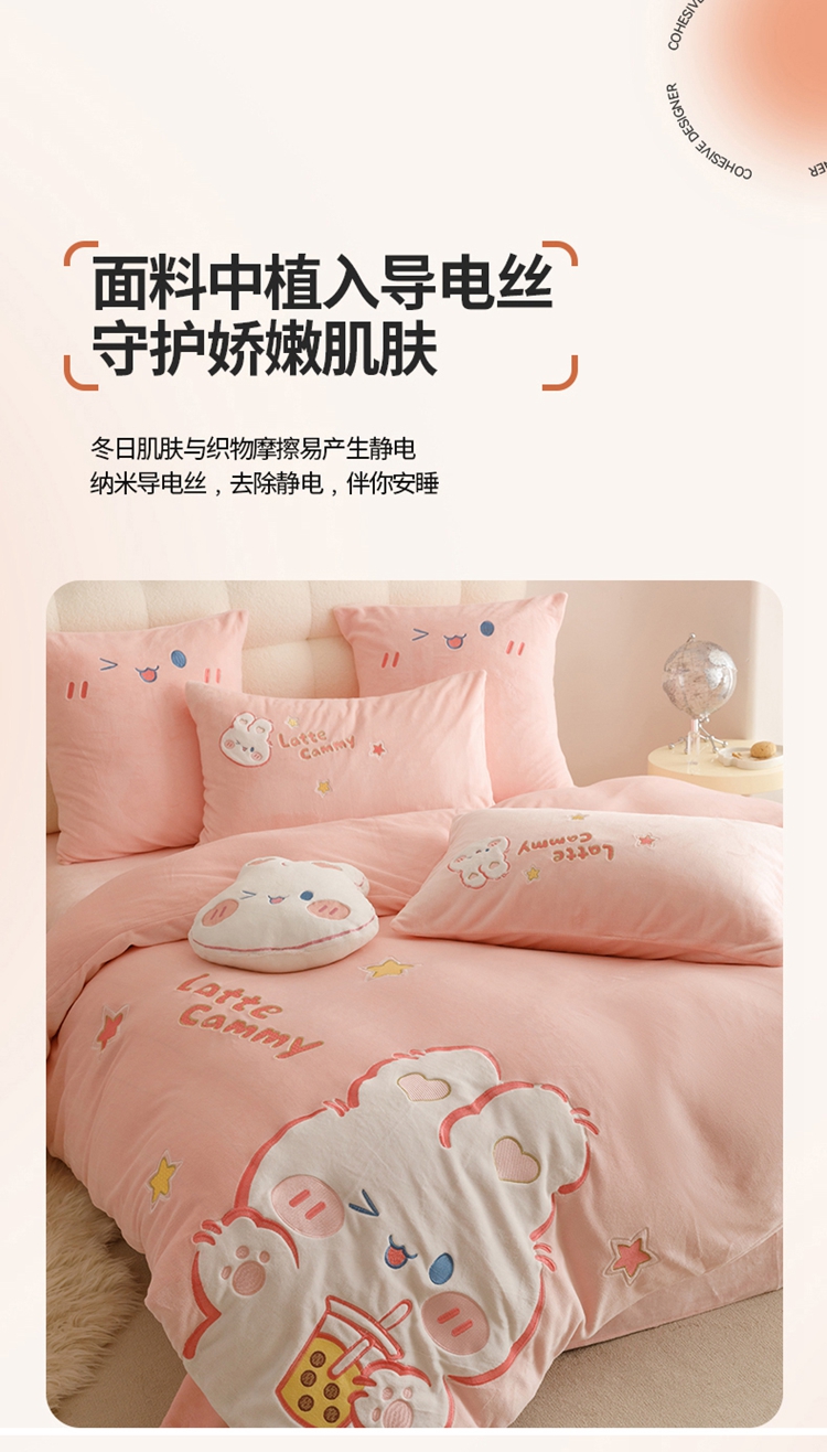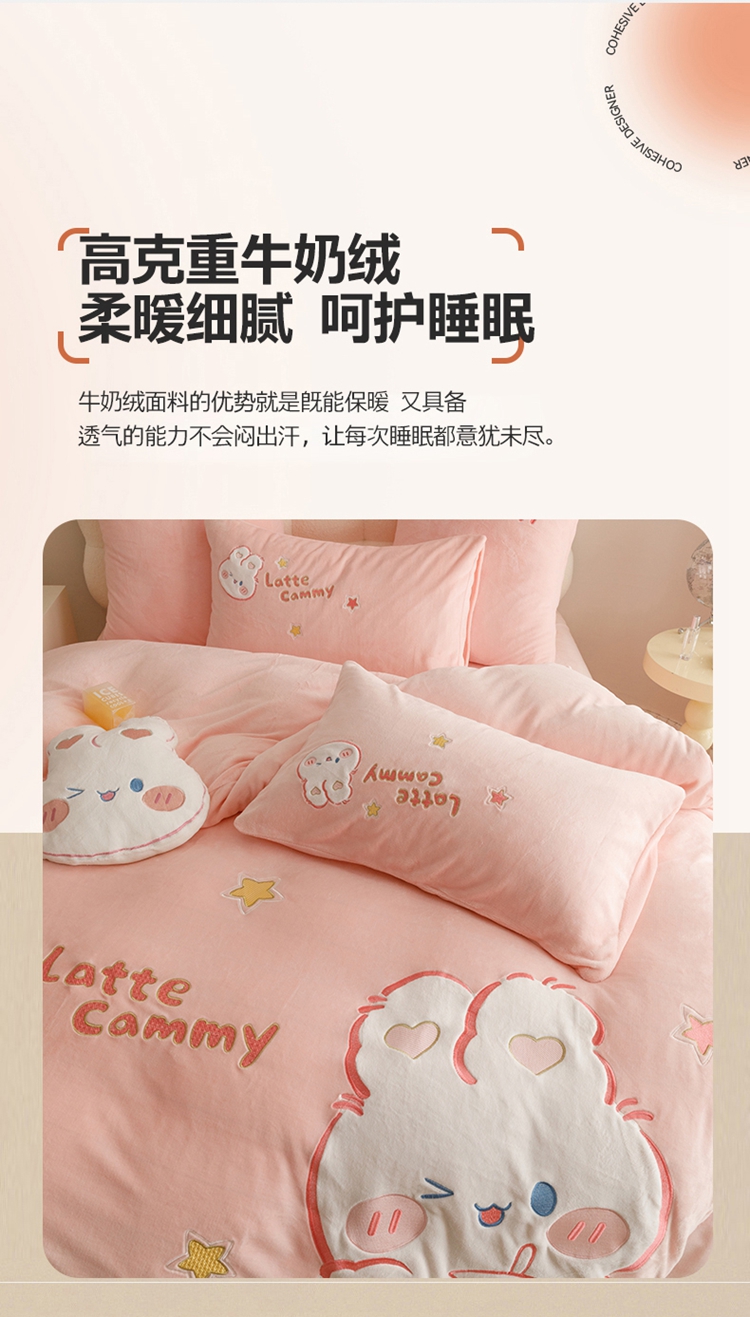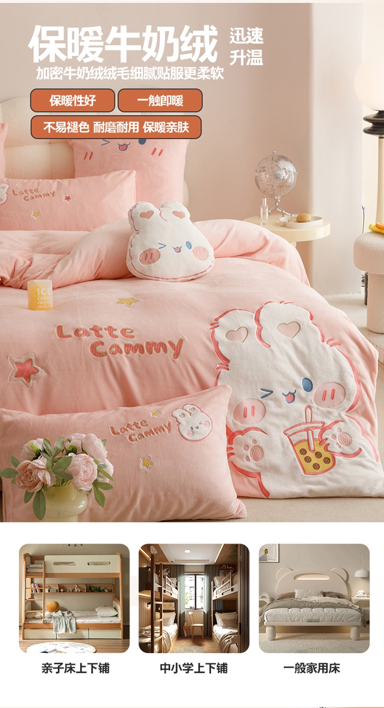 商品名称:(总)绒梦里 2024新款卡通贴布系列-加厚牛奶绒贴布绣四件套