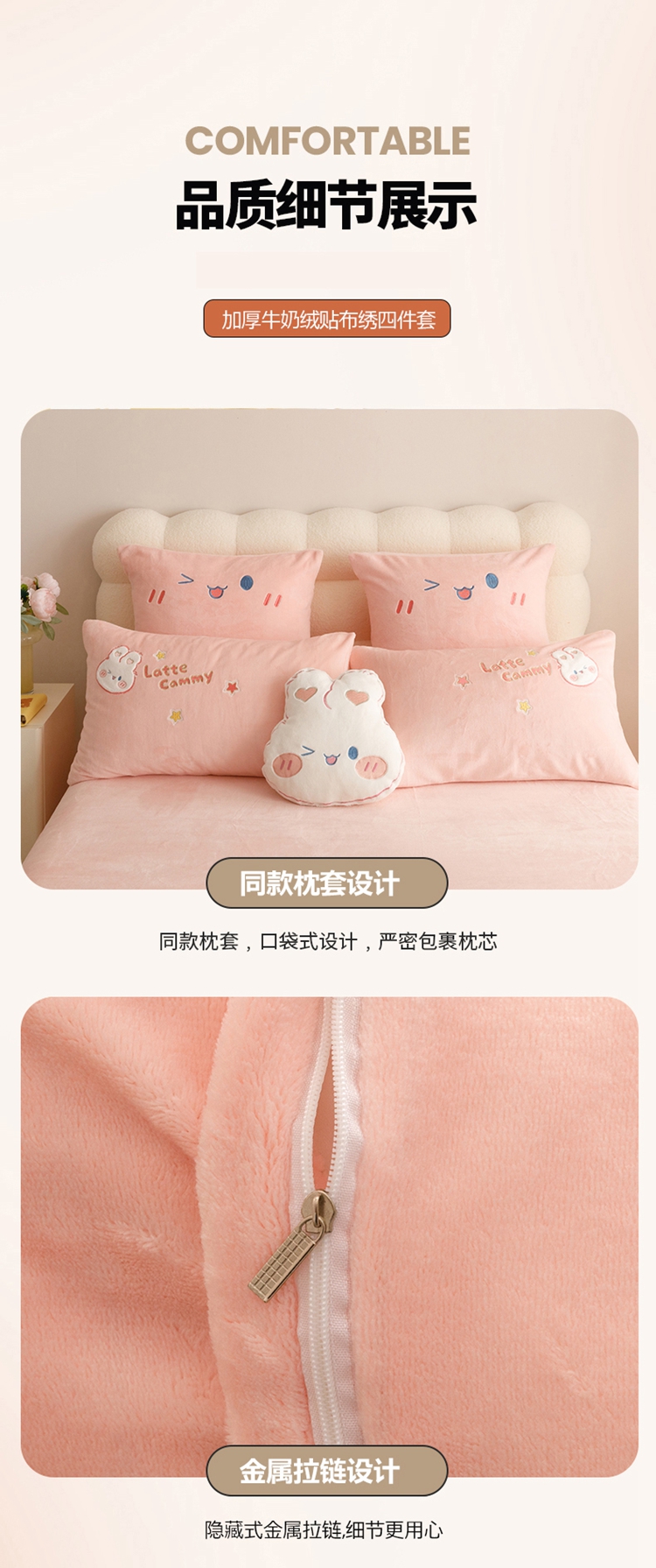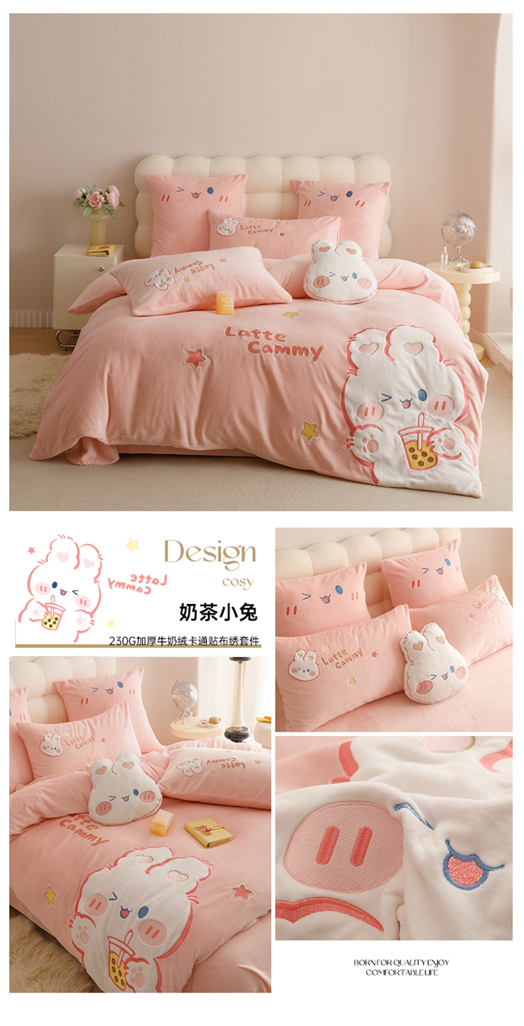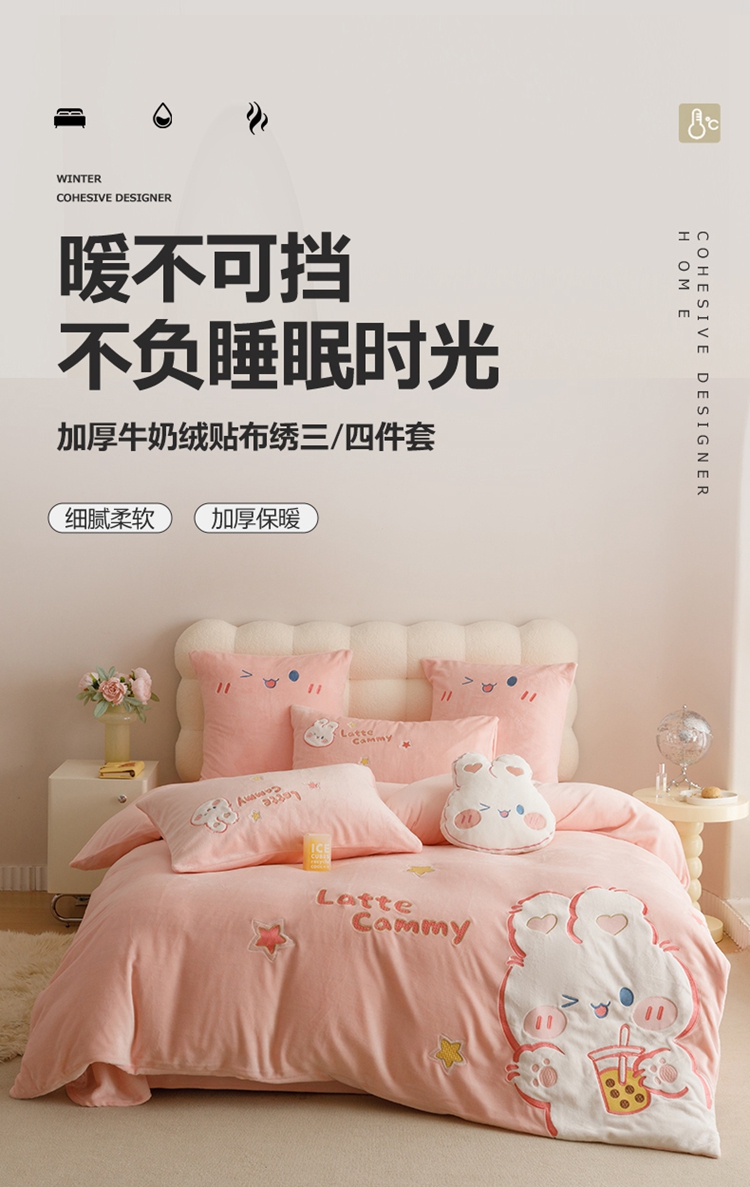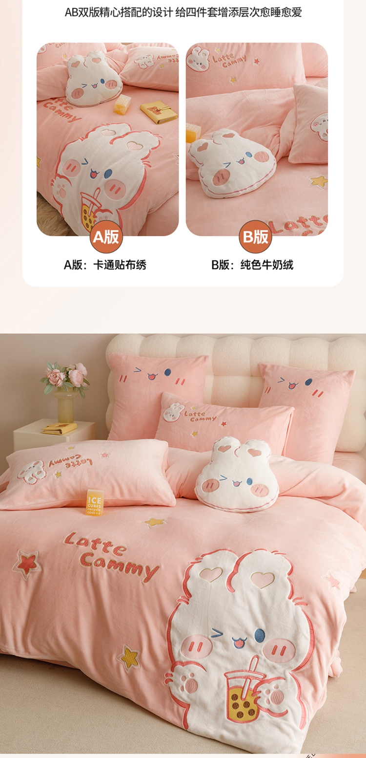 (总)绒梦里 2024新款卡通贴布系列-加厚牛奶绒贴布绣四件套