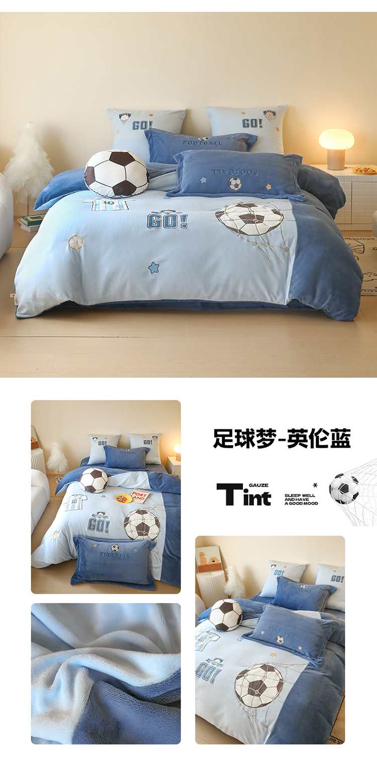 (总)2025新款A类加厚足球篮球卡通贴布绣牛奶绒四件套冬季儿童三件套床单床笠保暖套件,足球梦-英伦蓝,足球梦-浅蓝,挚爱篮球-浅蓝,挚爱篮球-英伦蓝,挚爱篮球-米色