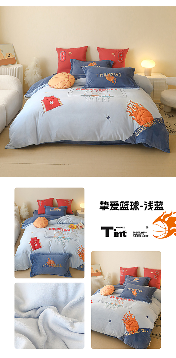 (总)绒梦里 2024新款A类加厚卡通贴布绣牛奶绒四件套冬季儿童三件套床单床笠保暖套件 ,奶茶小兔,足球梦-浅蓝,足球梦-英伦蓝,挚爱篮球-米色,挚爱篮球-浅蓝,挚爱篮球-英伦蓝