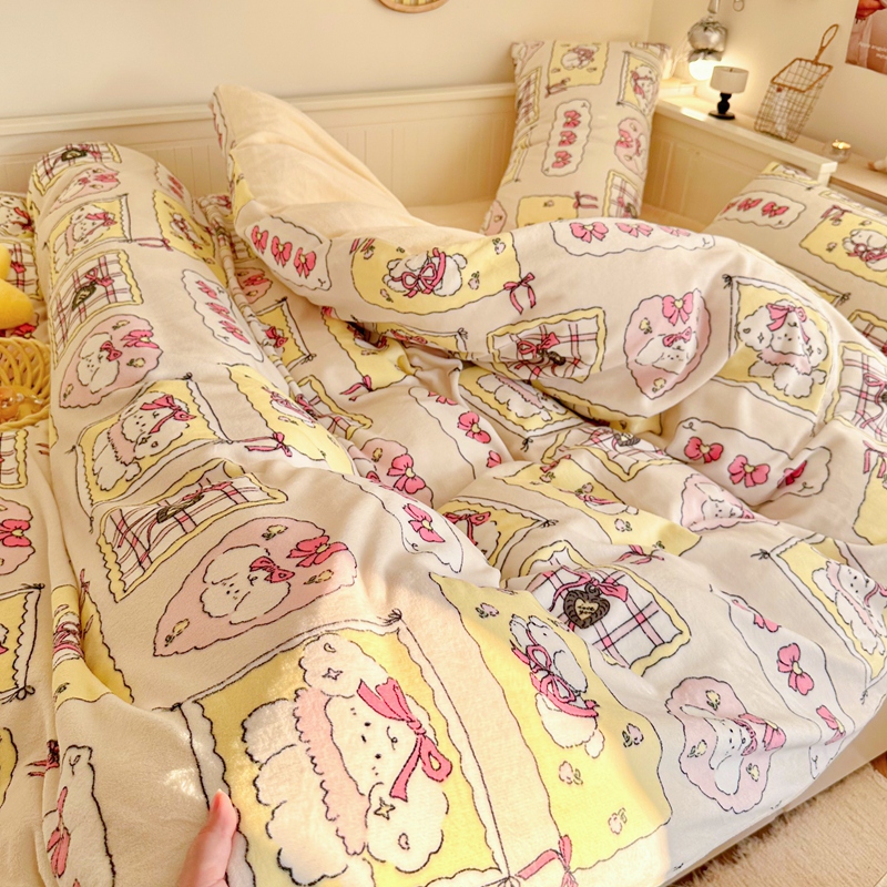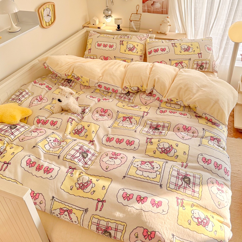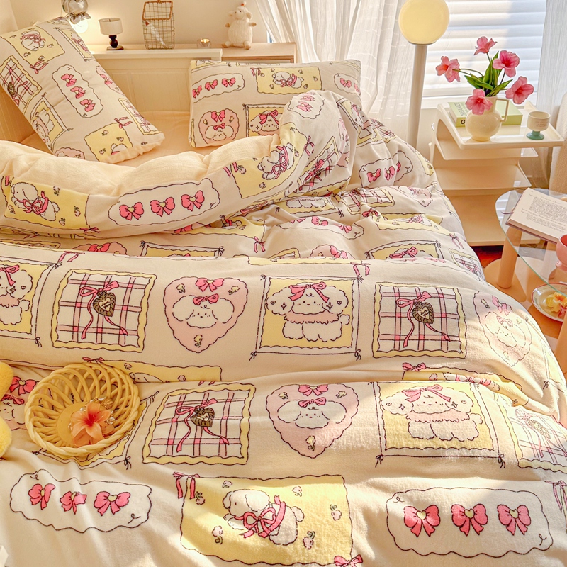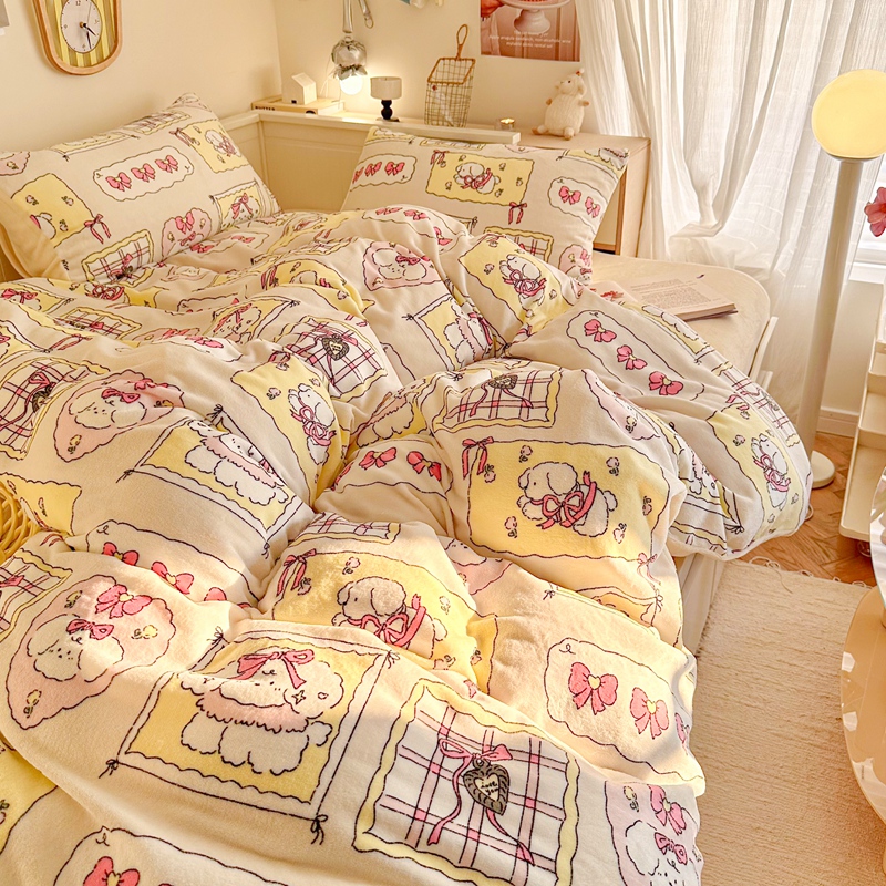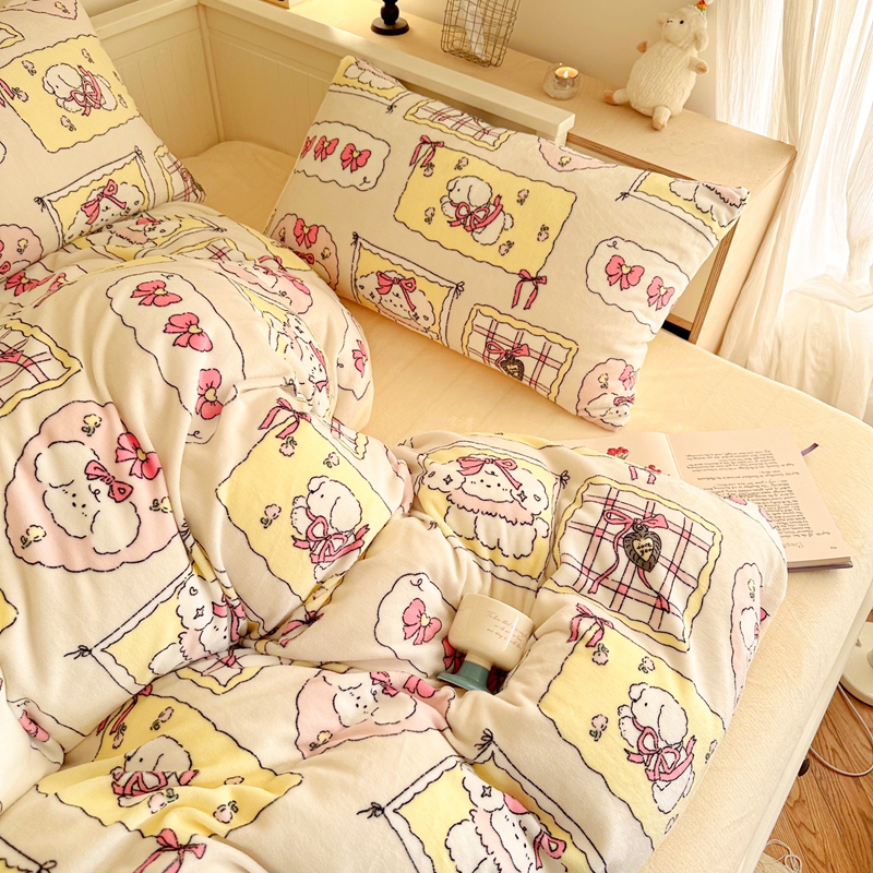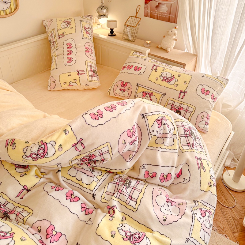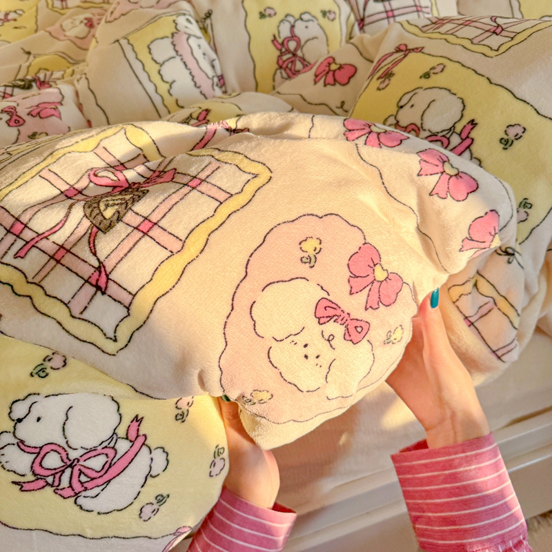 (总)呗旺鹿 2025新款A类高克重卡通印花牛奶绒印花四件套,蝴蝶结圆点小狗,开飞机的小熊,猫狗派对,奶油小猫,奶油星星狗,小熊的礼物,信封小熊,音乐小狗