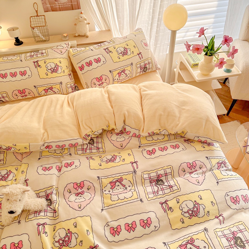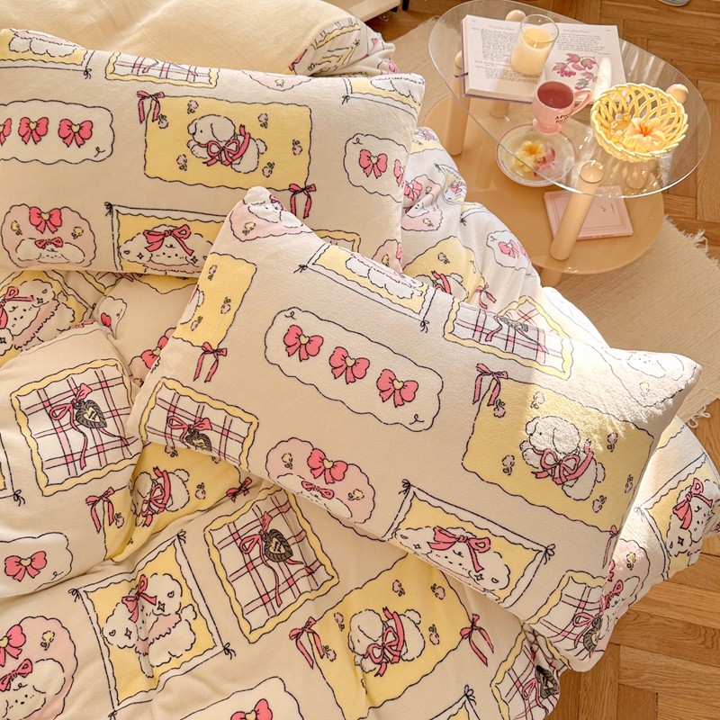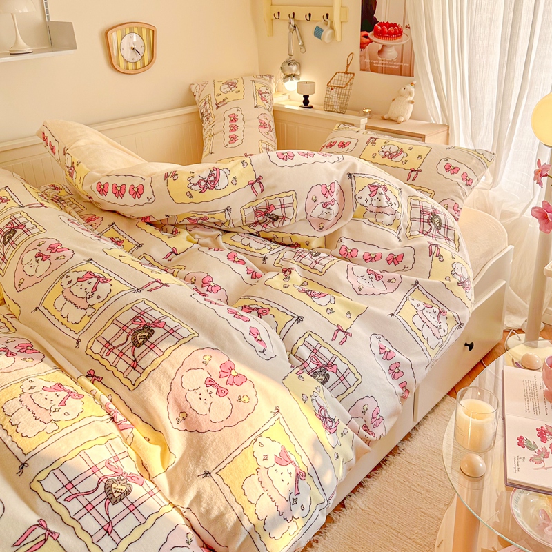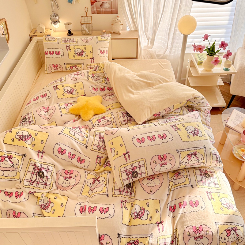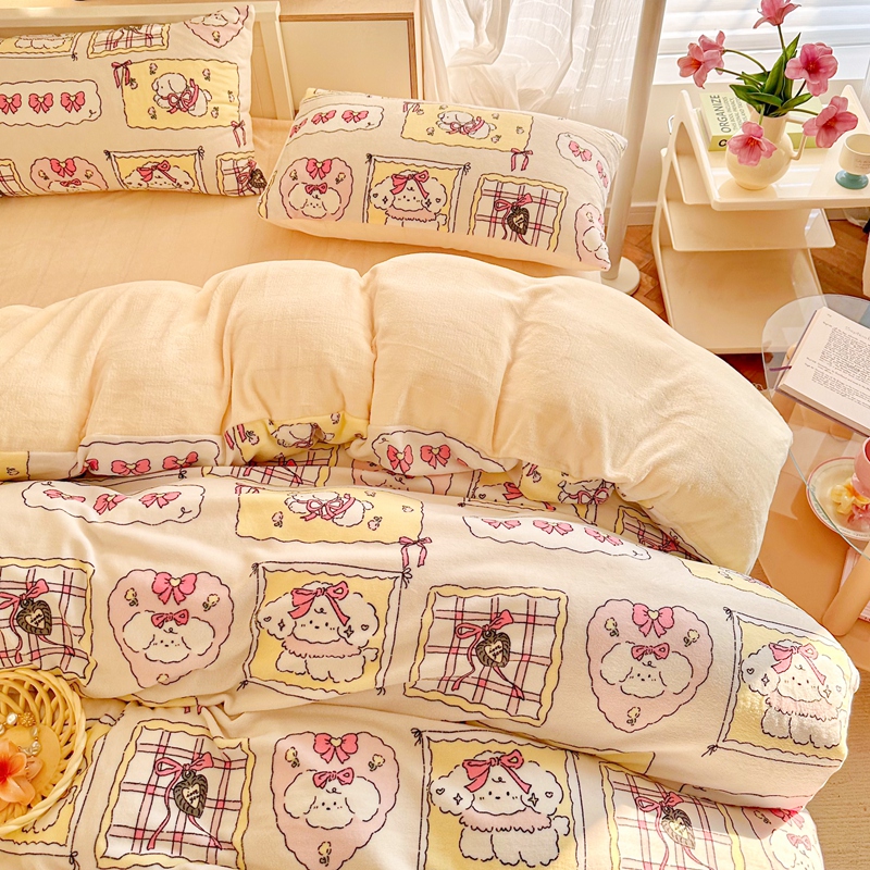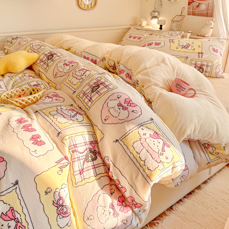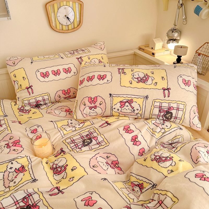 (总)呗旺鹿 2025新款A类高克重卡通印花牛奶绒印花四件套,蝴蝶结圆点小狗,开飞机的小熊,猫狗派对,奶油小猫,奶油星星狗,小熊的礼物,信封小熊,音乐小狗