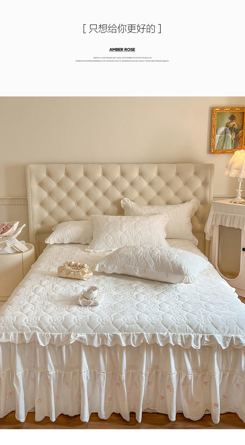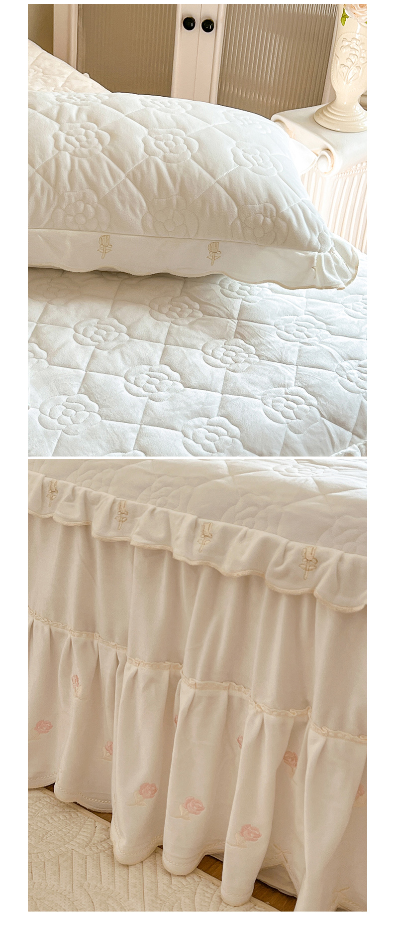 商品名称:网红馆(ck家纺) 2025新款高克重加厚保暖时尚花边宝宝绒乐伊系列床裙三件套 乐伊-白