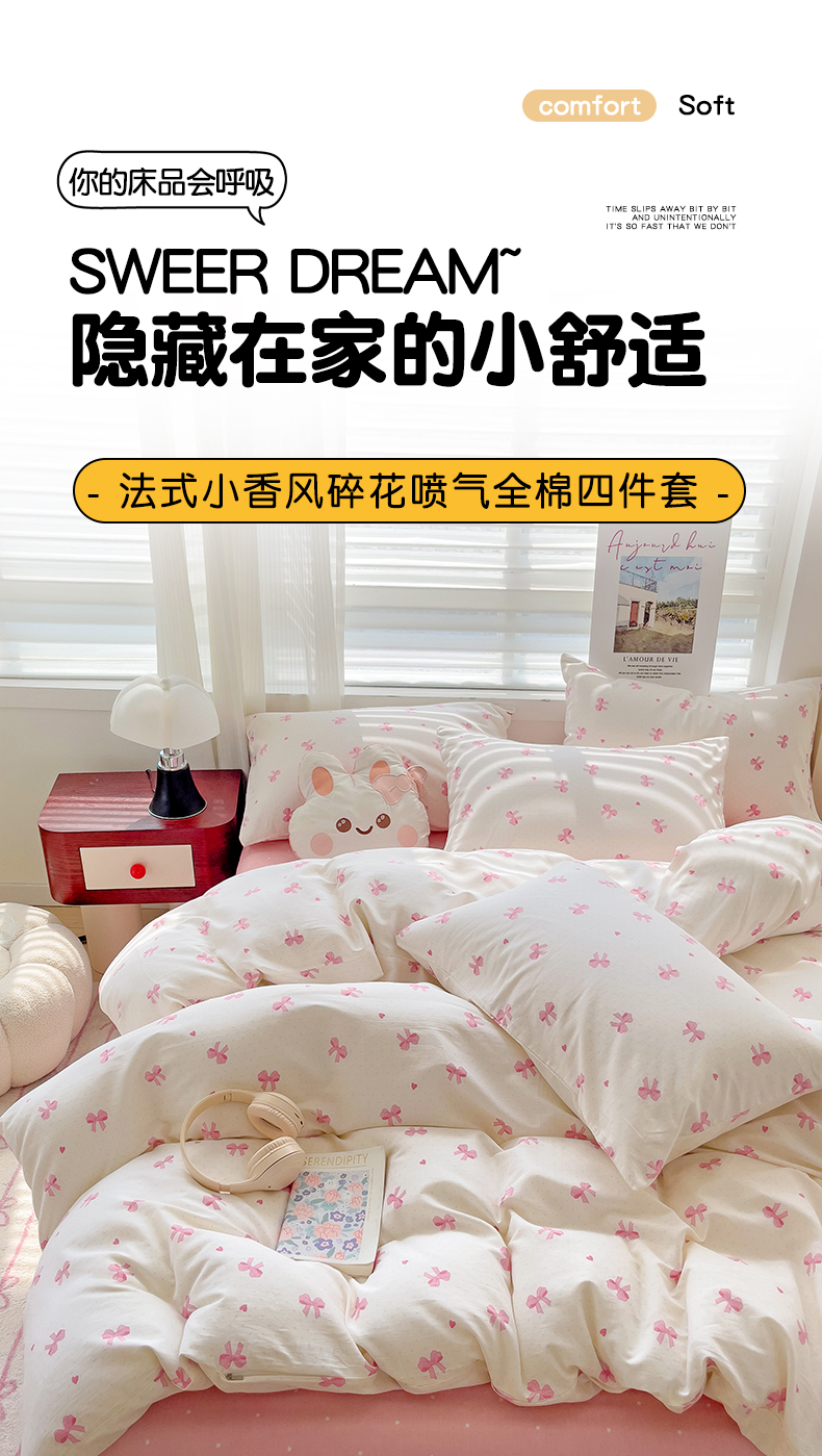 当前位置: 91家纺网 > 商品网购 > 床品套件 > 四件套 > 全棉普通四件套 > 卡普家居 2025新款法式全棉小香风碎花四件套-实景拍摄 甜心恋曲