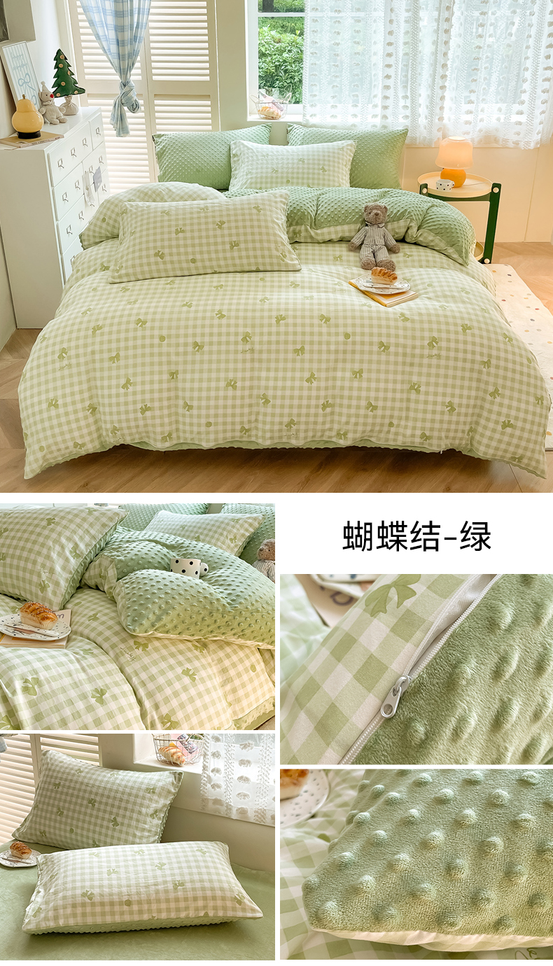 佰亿莱 2024新款豆豆绒四件套 蝴蝶结-绿