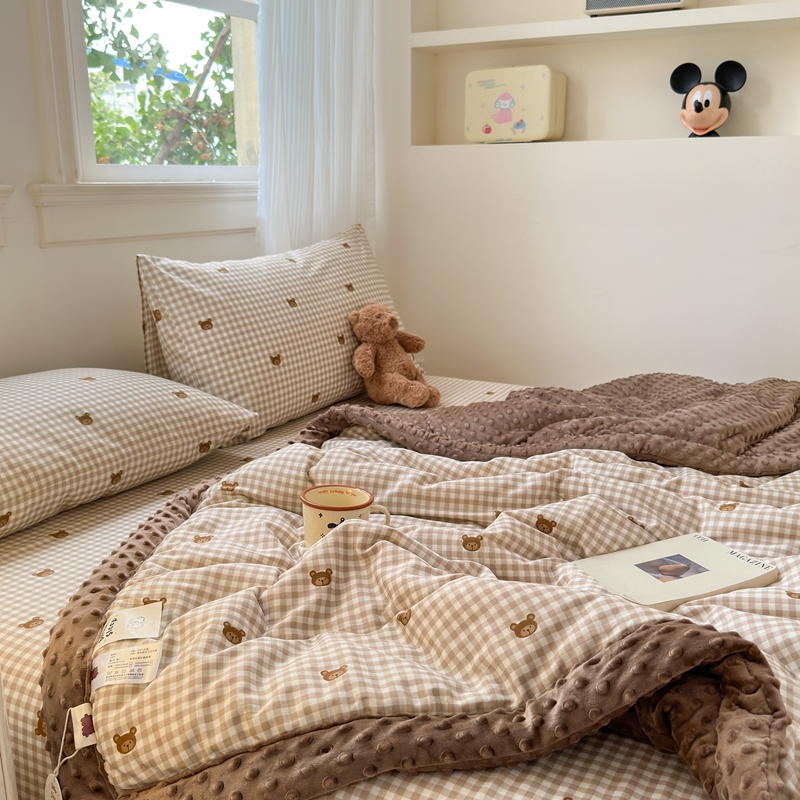 商品名称:星期八 2024新款复古碎花全棉豆豆被 咖格熊