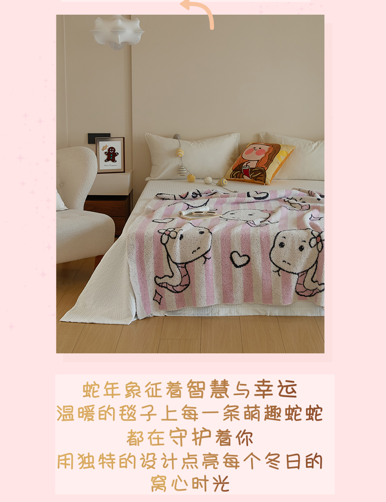 暖绵绵家纺 2025新款半边绒毛毯-斯内克(最低零售价:161元) 斯内克-粉色