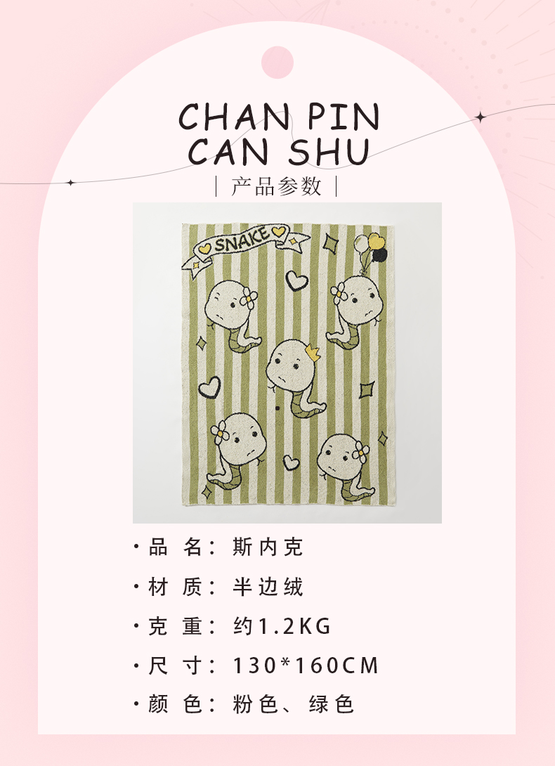 商品名称:暖绵绵家纺 2025新款半边绒毛毯-斯内克(最低零售价:161元) 斯内克-粉色