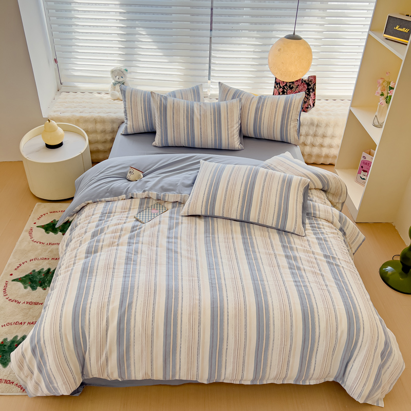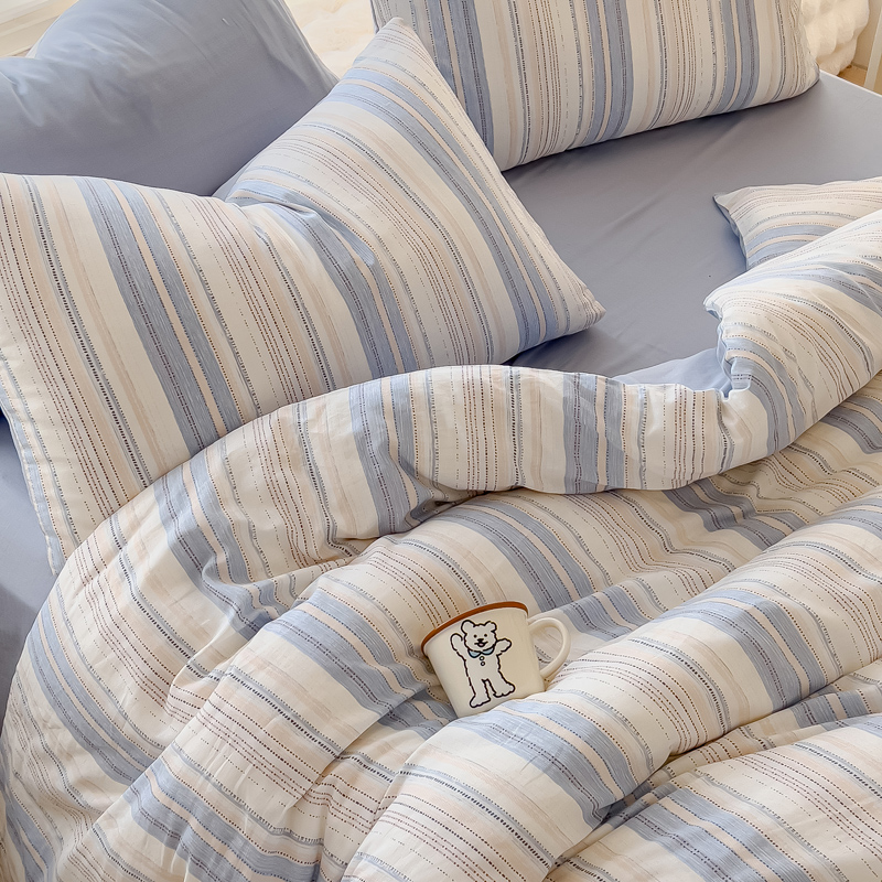 商品名称:金丝鸟家纺 2024秋冬新品全棉双层纱四件套 山川-蓝