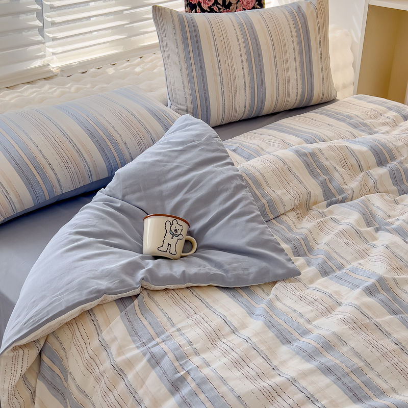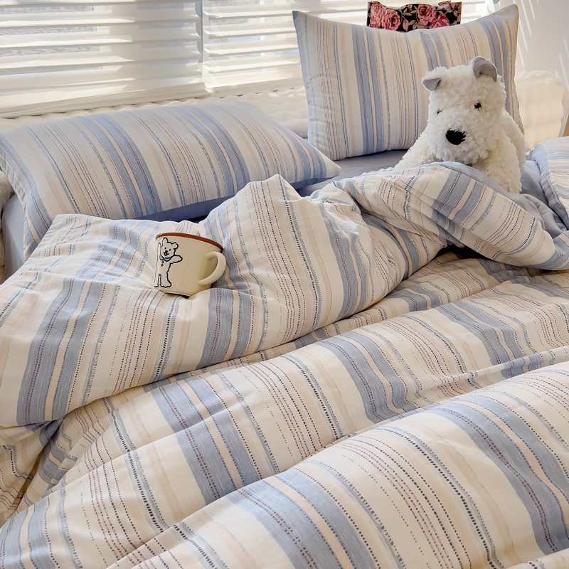 (总)金丝鸟家纺 2025新款全棉斜纹印花条纹系列四件套及单品,白色象牙,黑白世界,杰文兰,具象蓝,清澈,数往,往昔,西冷蓝,细末,追忆灰,追忆蓝