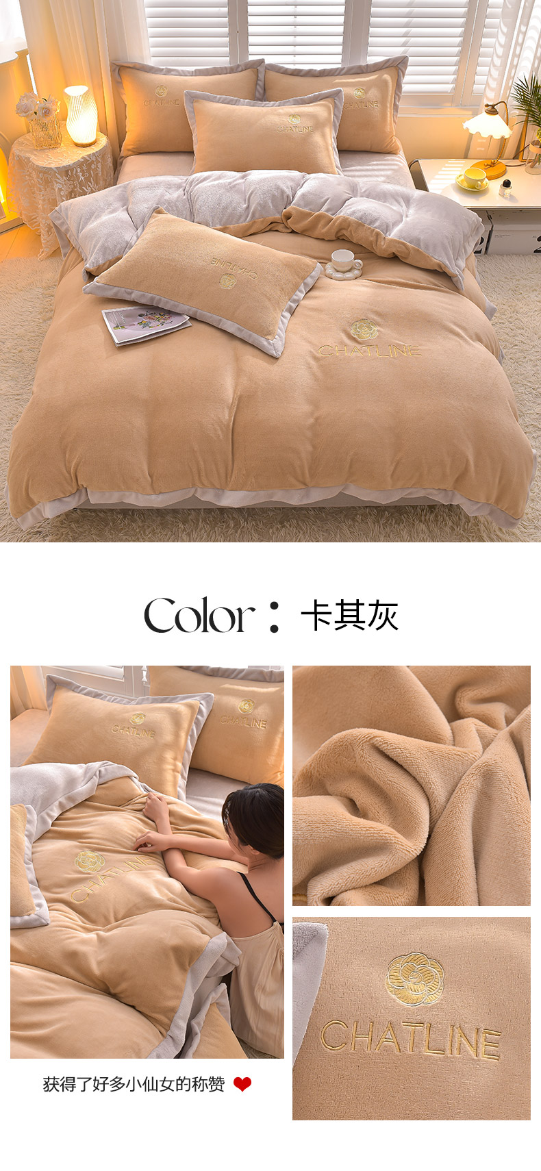 当前位置: 91家纺网 > 商品网购 > 床品套件 > 四件套 > 牛奶绒四件套 > 简爱 2025新款牛奶绒纯色双拼拼角工艺款四件套-初暖 卡其灰