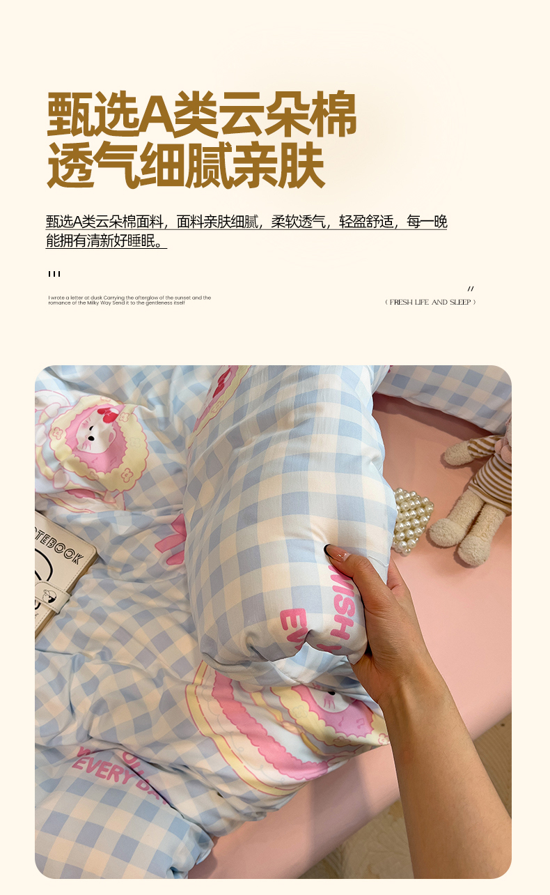 当前位置: 91家纺网 > 商品网购 > 床品套件 > 四件套 > 水洗棉四件套 > 妖妖家纺 2025新款水洗云朵糯糯棉大版枕套四件套 蛋糕猫