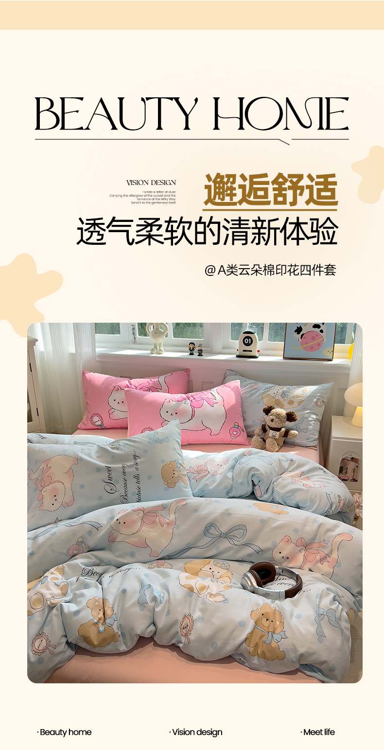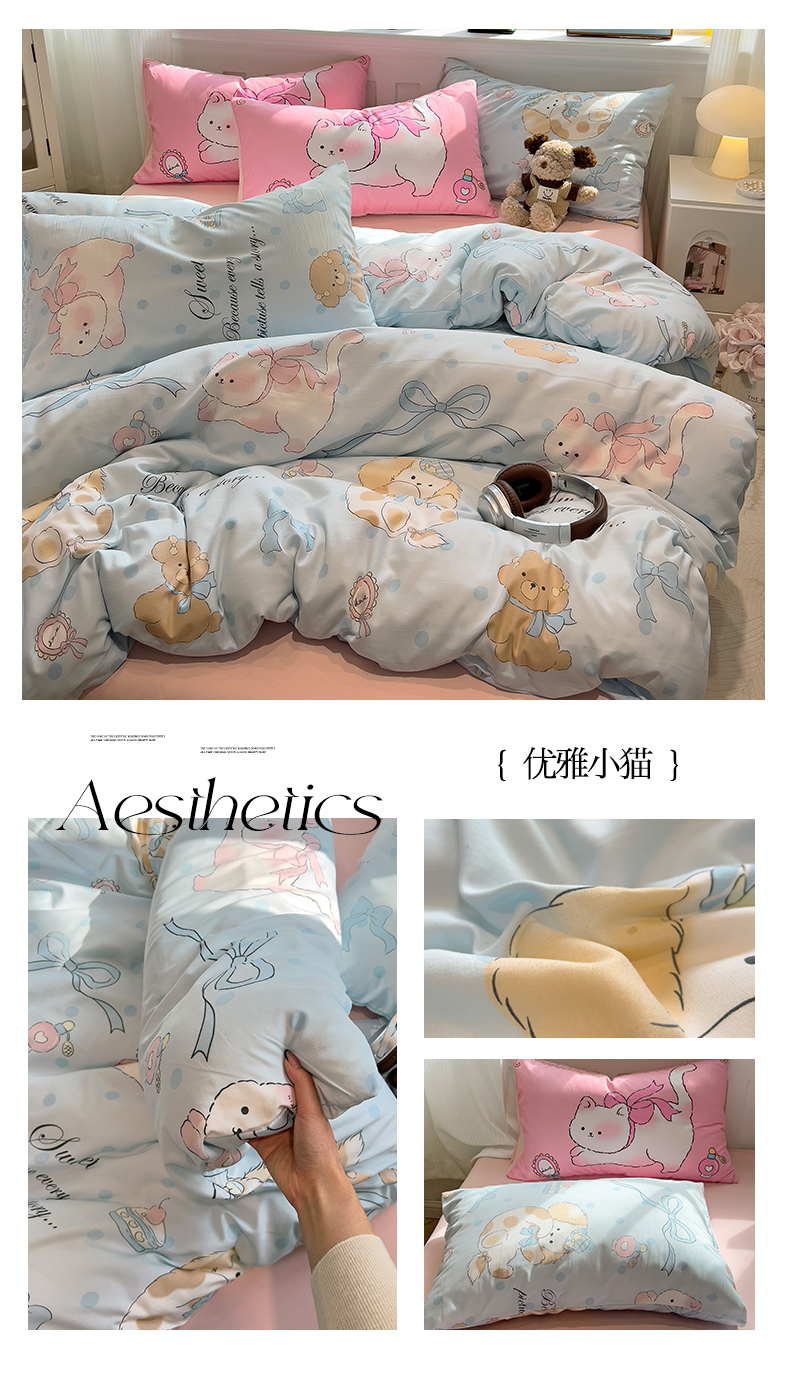 当前位置: 91家纺网 > 商品网购 > 床品套件 > 四件套 > 水洗棉四件套 > 妖妖家纺 2025新款水洗云朵糯糯棉大版枕套四件套 优雅小猫