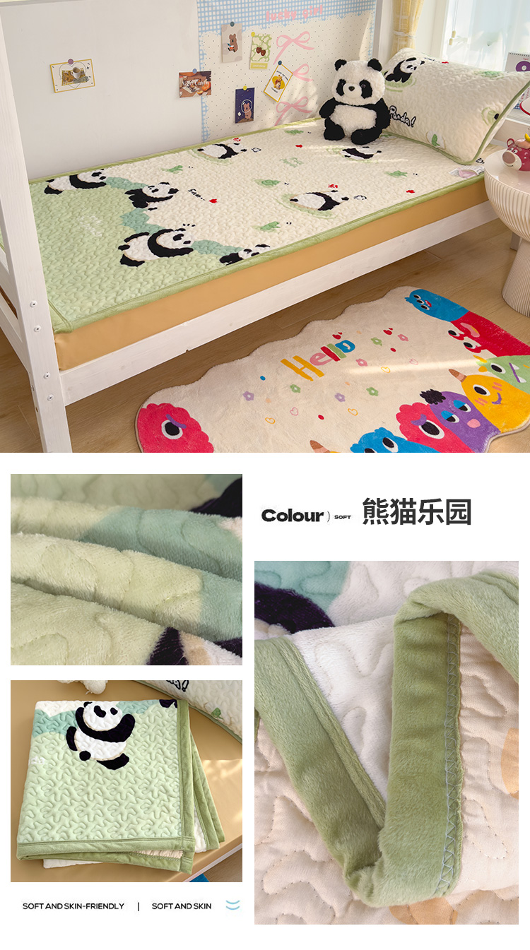 赫梵茜 2024新款90✖200学生牛奶绒床盖熊猫乐园