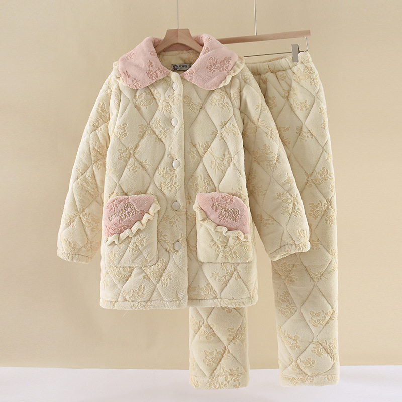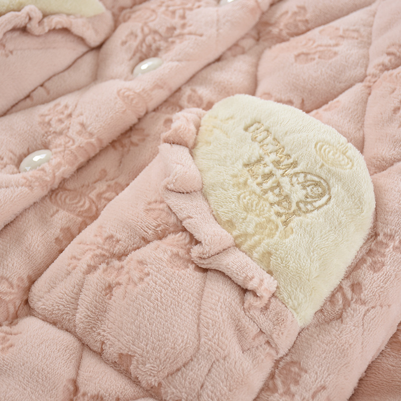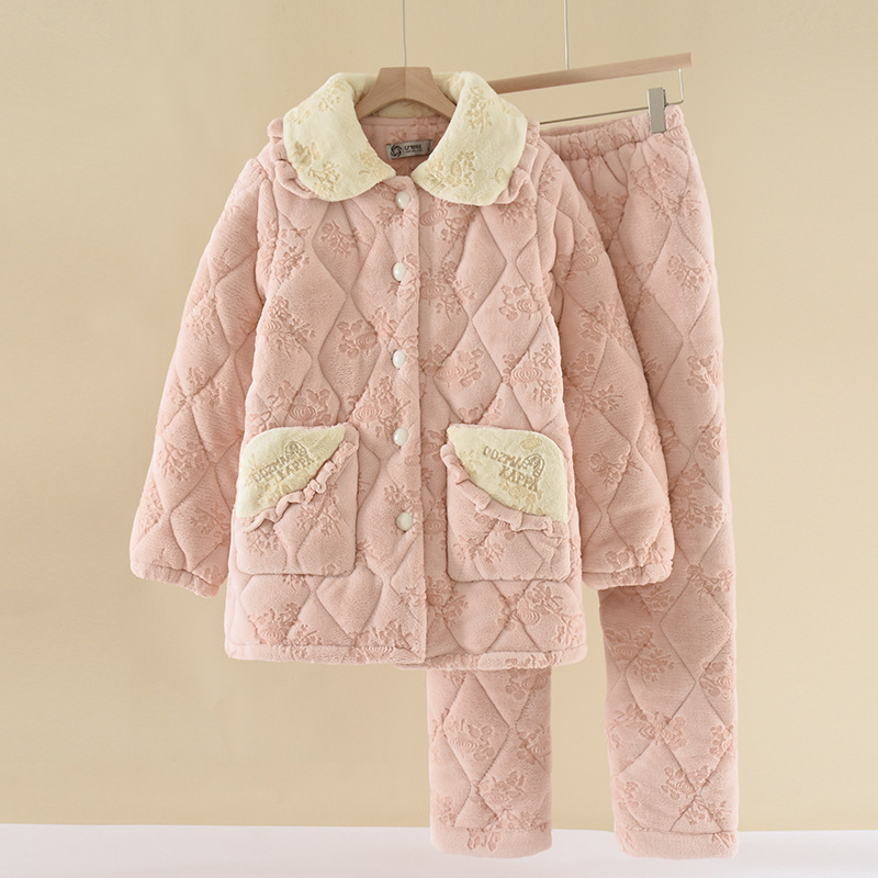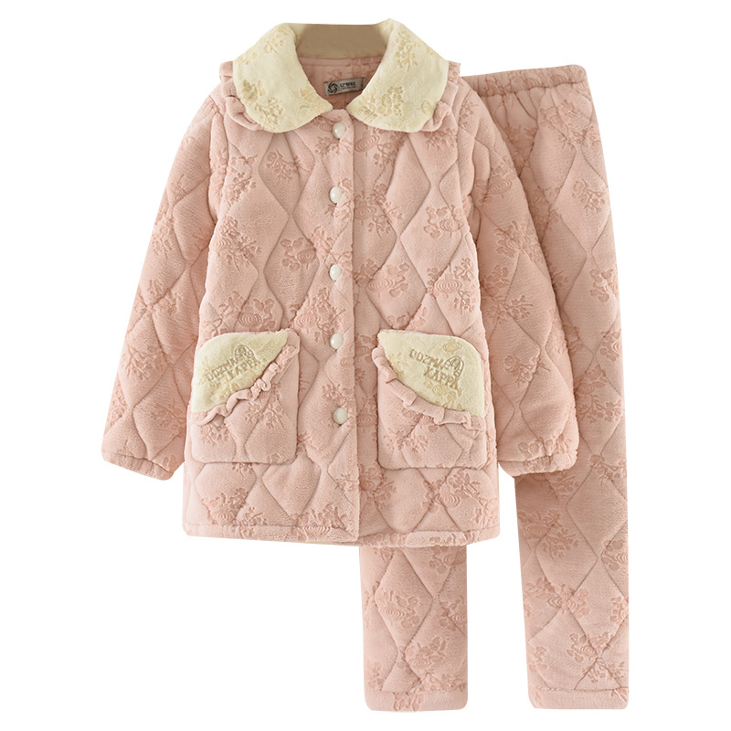 (总)睡衣女士珊瑚绒秋冬季三层夹棉妈妈款