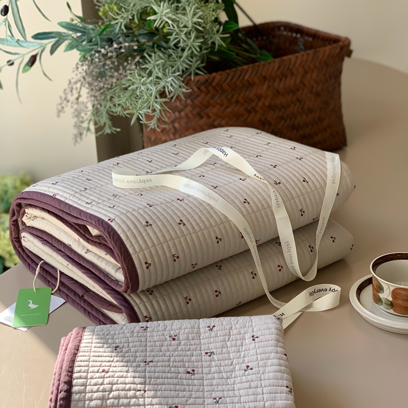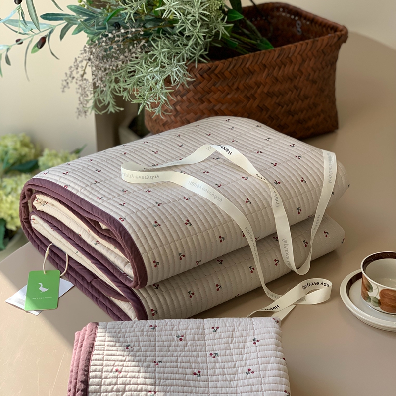 (总)汇庭 2025新款秋冬胖胖樱桃春秋被+樱桃菲菲床盖三件套,组合图下单仅供展示不可下单,粉色,绿色,米色
