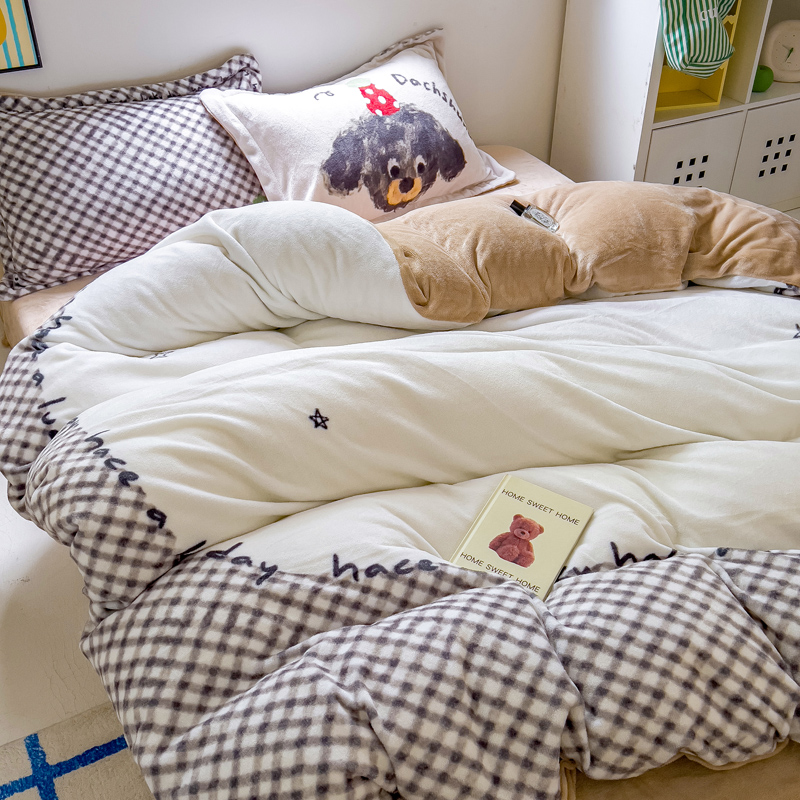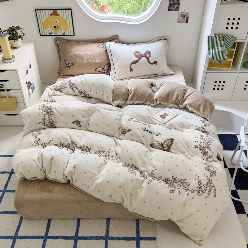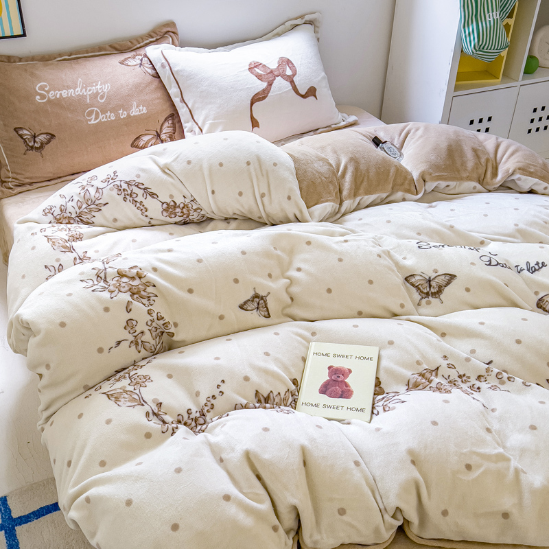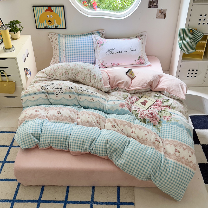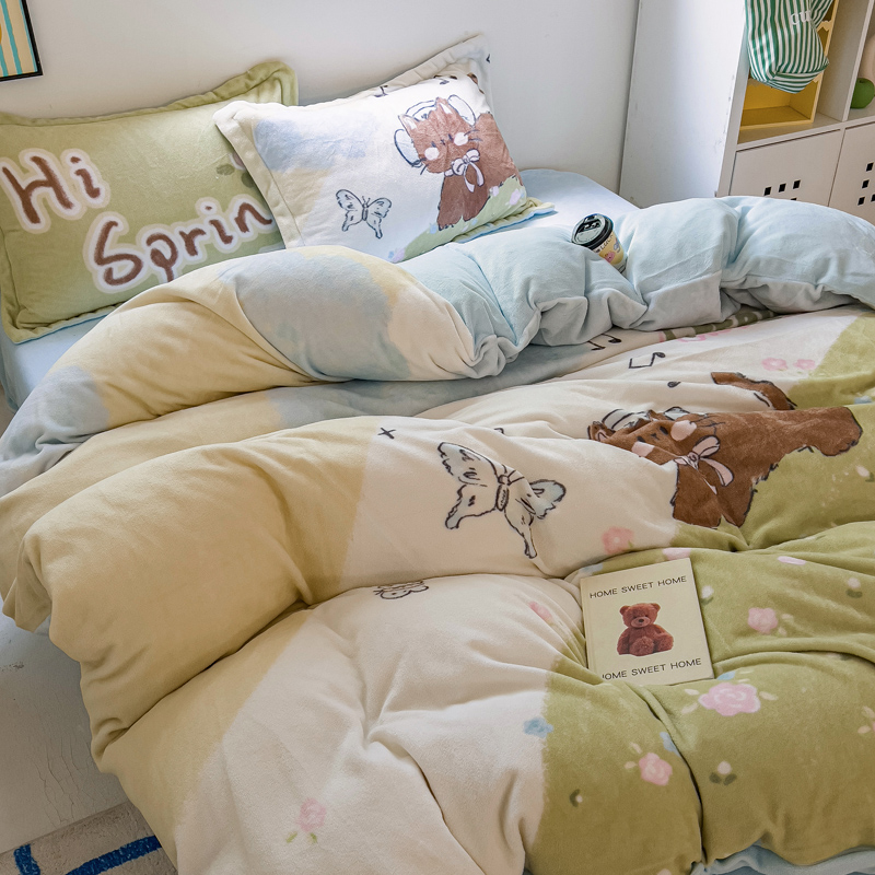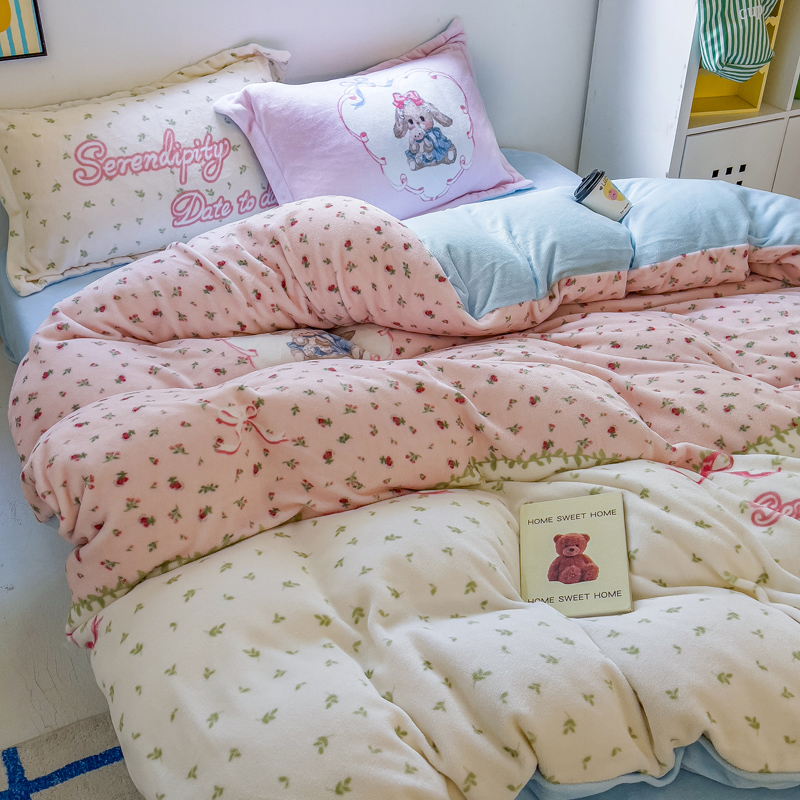 商品名称:(总)(买家秀 爆款不断货)A类母婴级双面牛奶绒珊瑚绒雪花绒四件套AB版高克重卡通牛奶绒四件套花卉-场景2