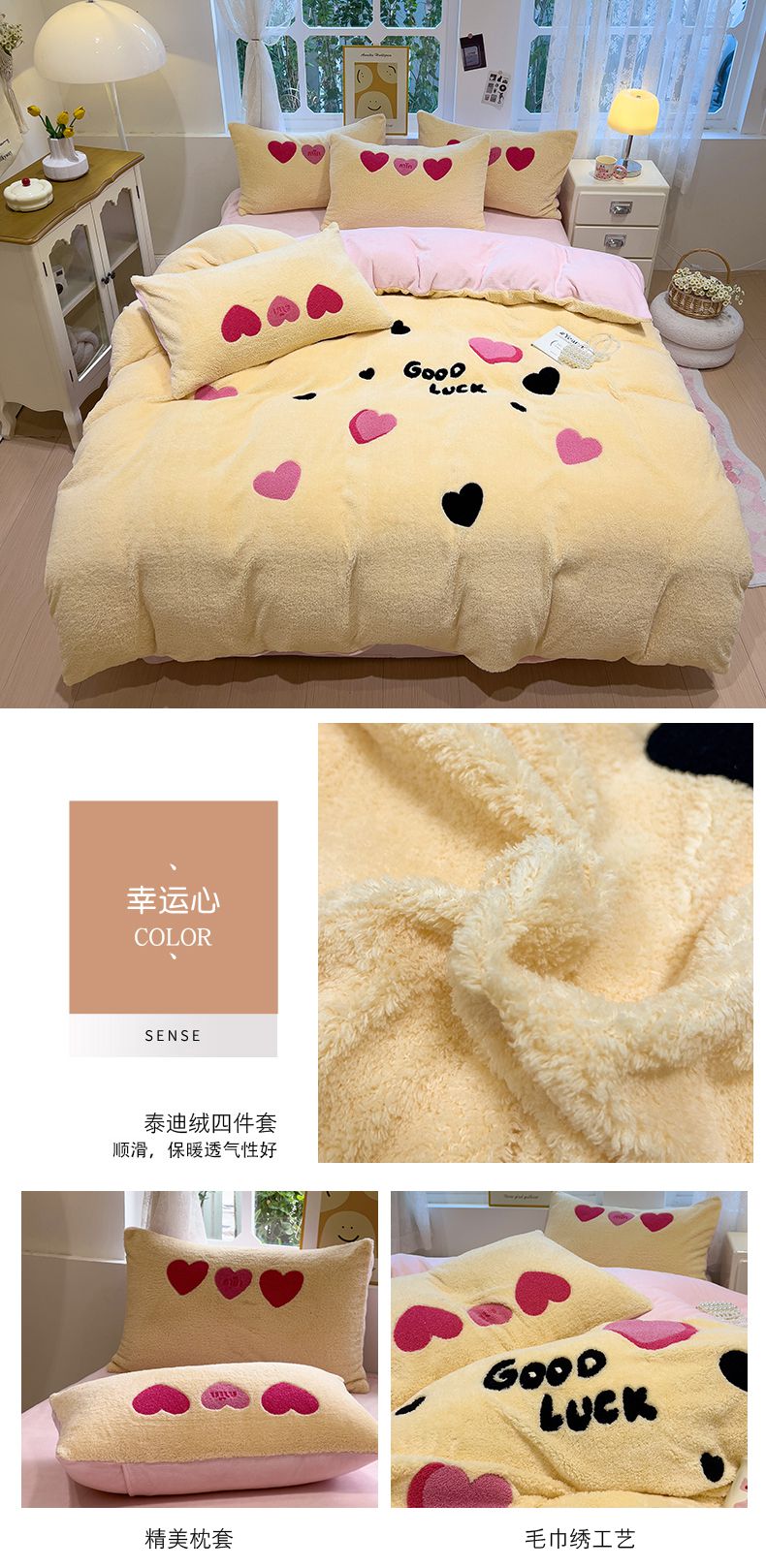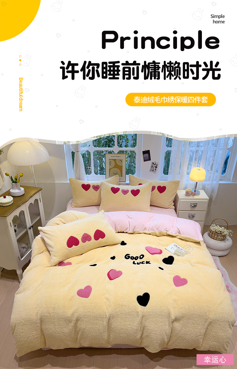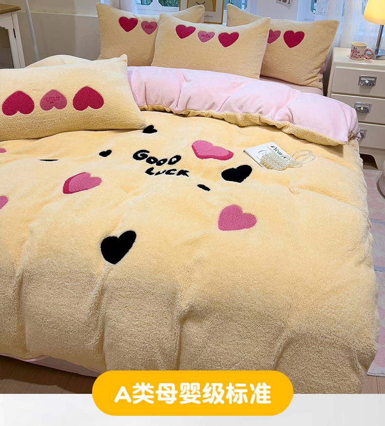 当前位置: 91家纺网 > 商品网购 > 床品套件 > 四件套 > 牛奶绒四件套 > (买家秀 爆款不断货)A类母婴级泰迪绒牛奶绒刺绣四件套珊瑚绒牛奶绒四件套雪花绒四件套刺绣婴儿绒四件套 泰迪绒-幸运心