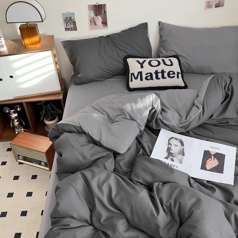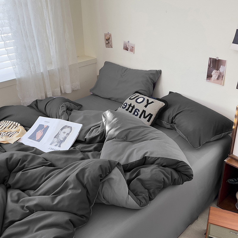当前位置: 91家纺网 > 商品网购 > 床品套件 > 四件套 > 水洗棉四件套 > 维娜斯家纺 2025新款水洗棉纯色双拼四件套亲肤柔单人被套床单学生三件套 灰色+浅灰
