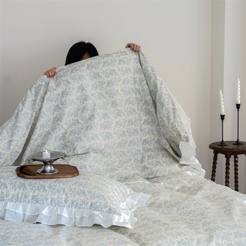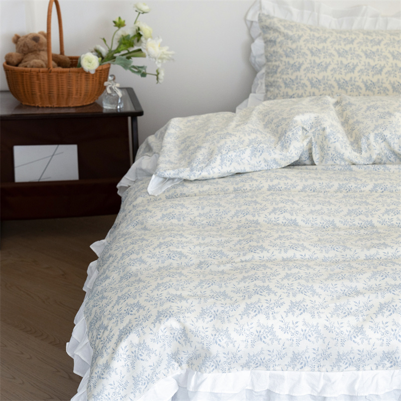 当前位置: 91家纺网 > 商品网购 > 床品套件 > 四件套 > 全棉普通四件套 > 尺素 2025年小碎花纯棉花边四件套全棉田园风荷叶边被套纯棉床单棉法式套件1.8纯色床笠套件 散文诗浅蓝(花边款)