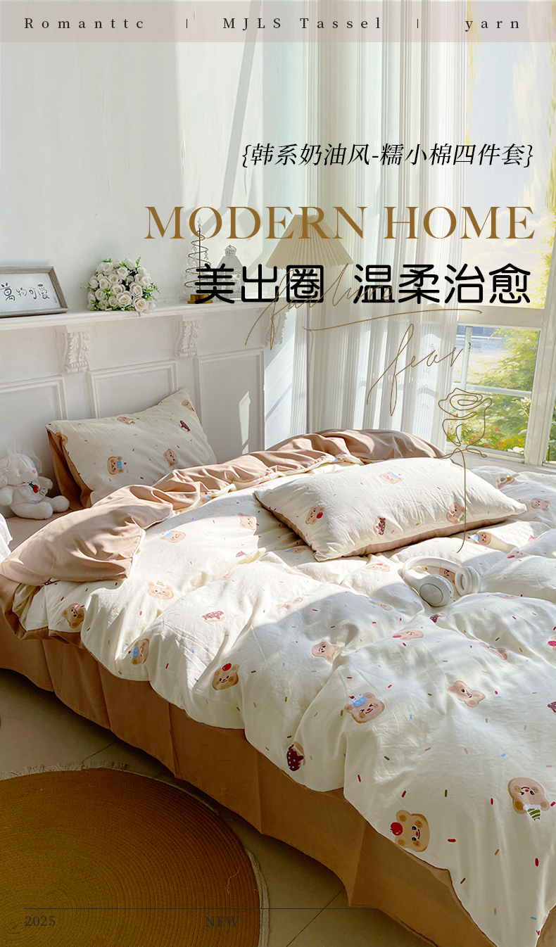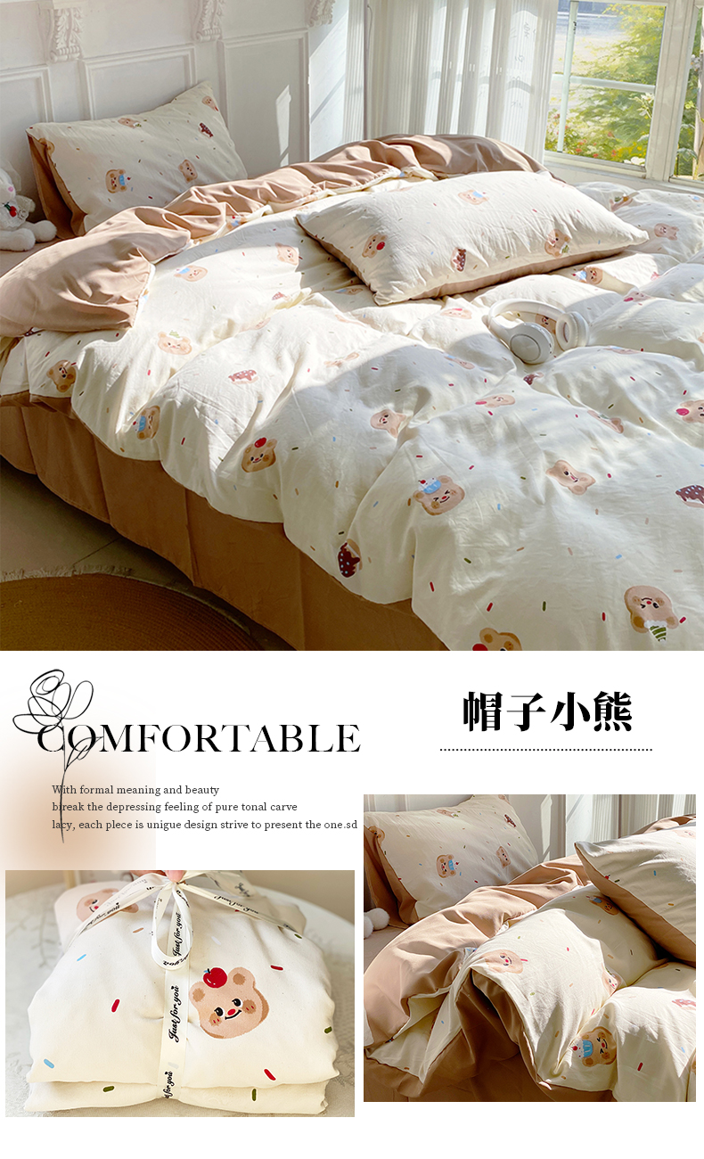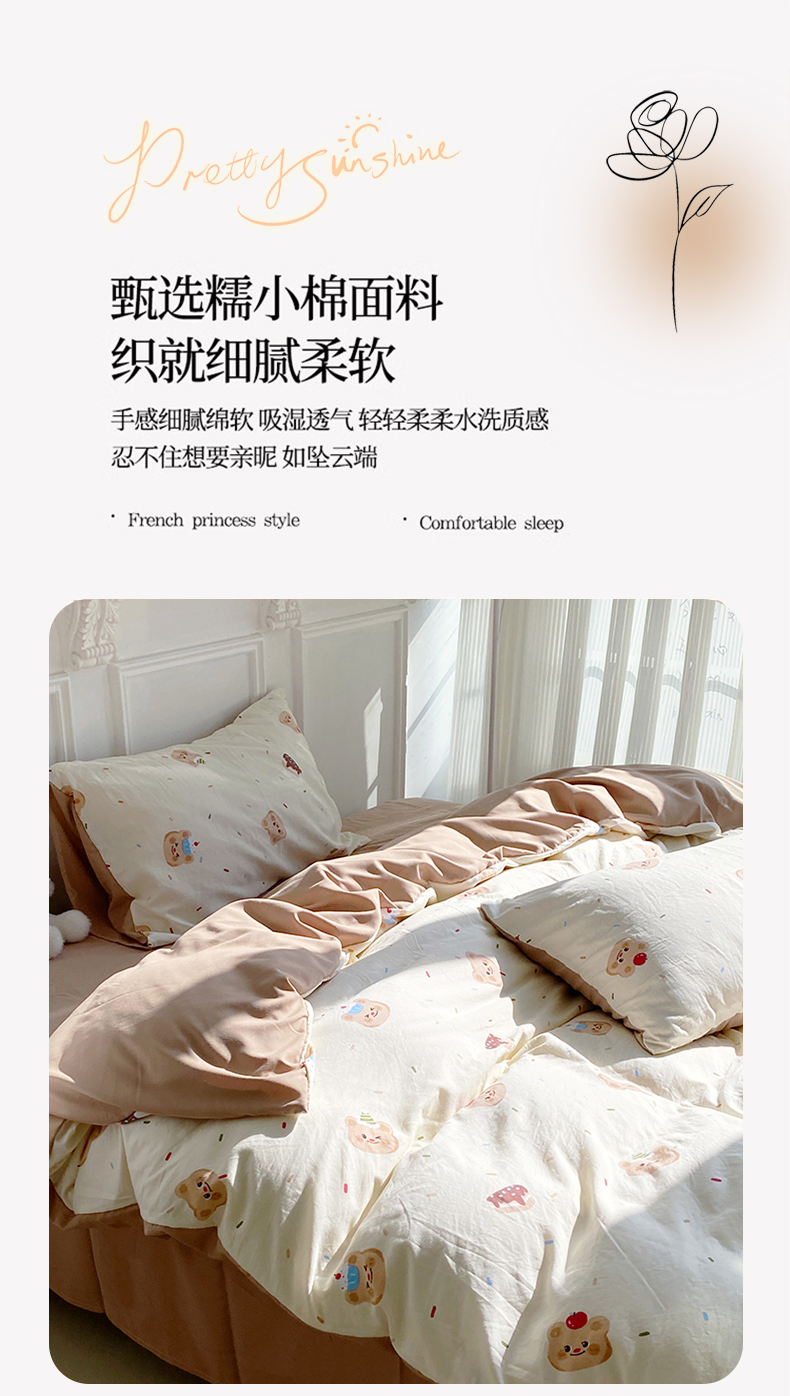 当前位置: 91家纺网 > 商品网购 > 床品套件 > 四件套 > 水洗棉四件套 > 丫丫家纺 2025新小红书直播热款水洗糯小棉四件套软敷敷糯叽叽ins卡通小清新学生床加大号小号单被套单床笠三四 帽子小熊