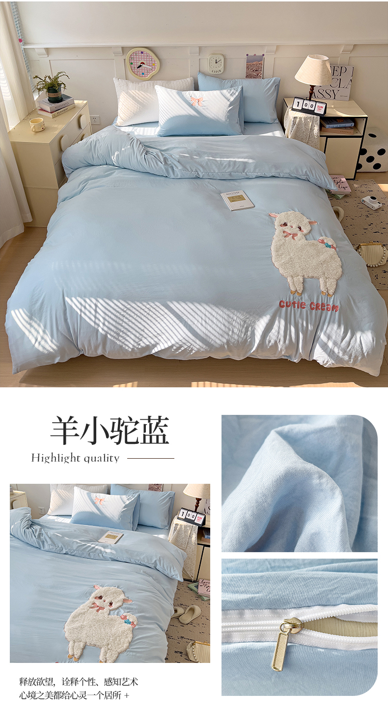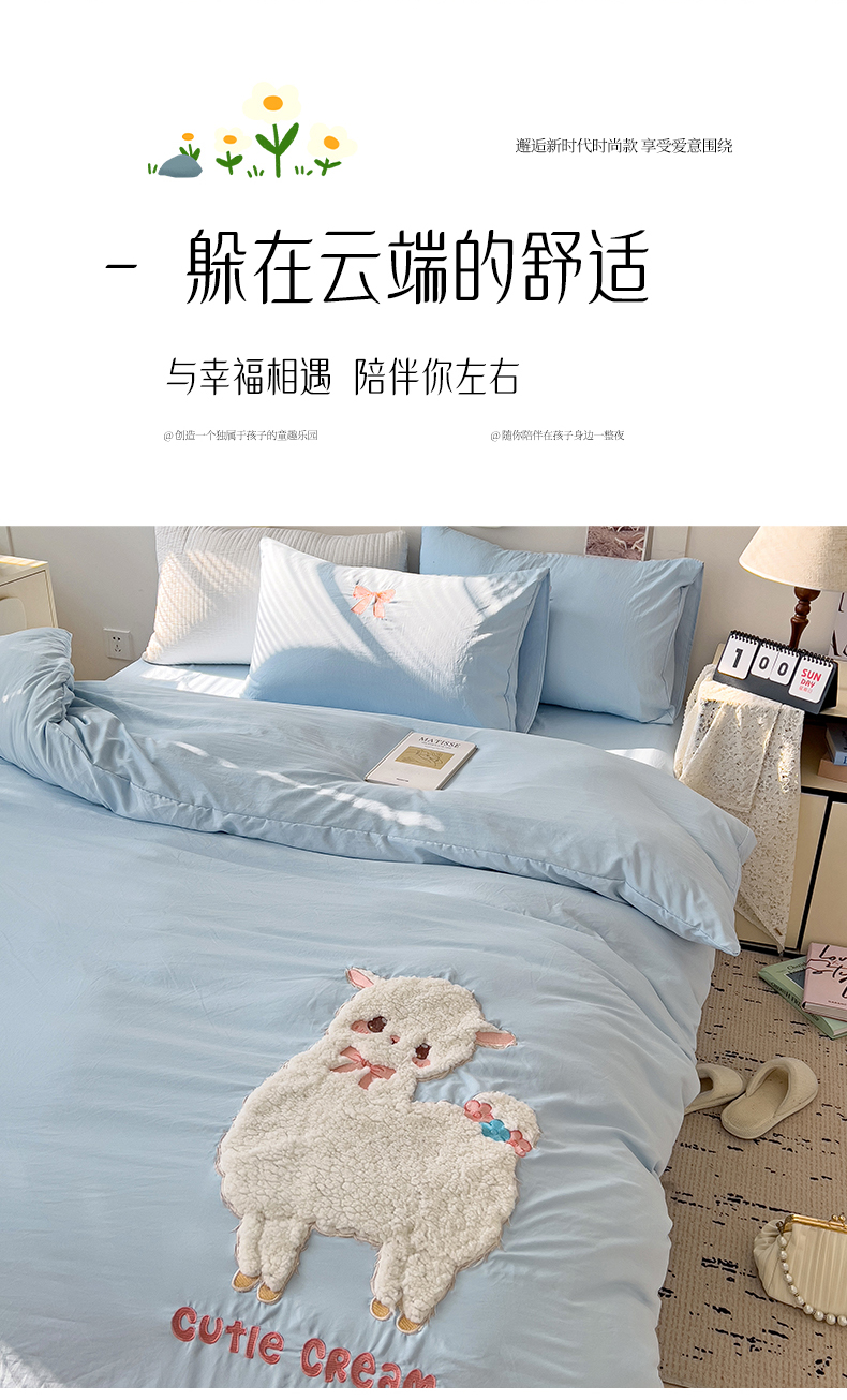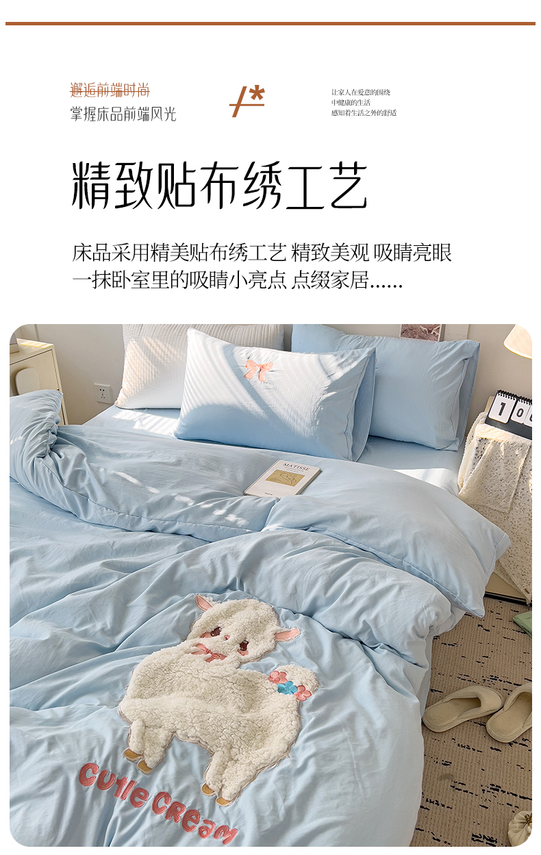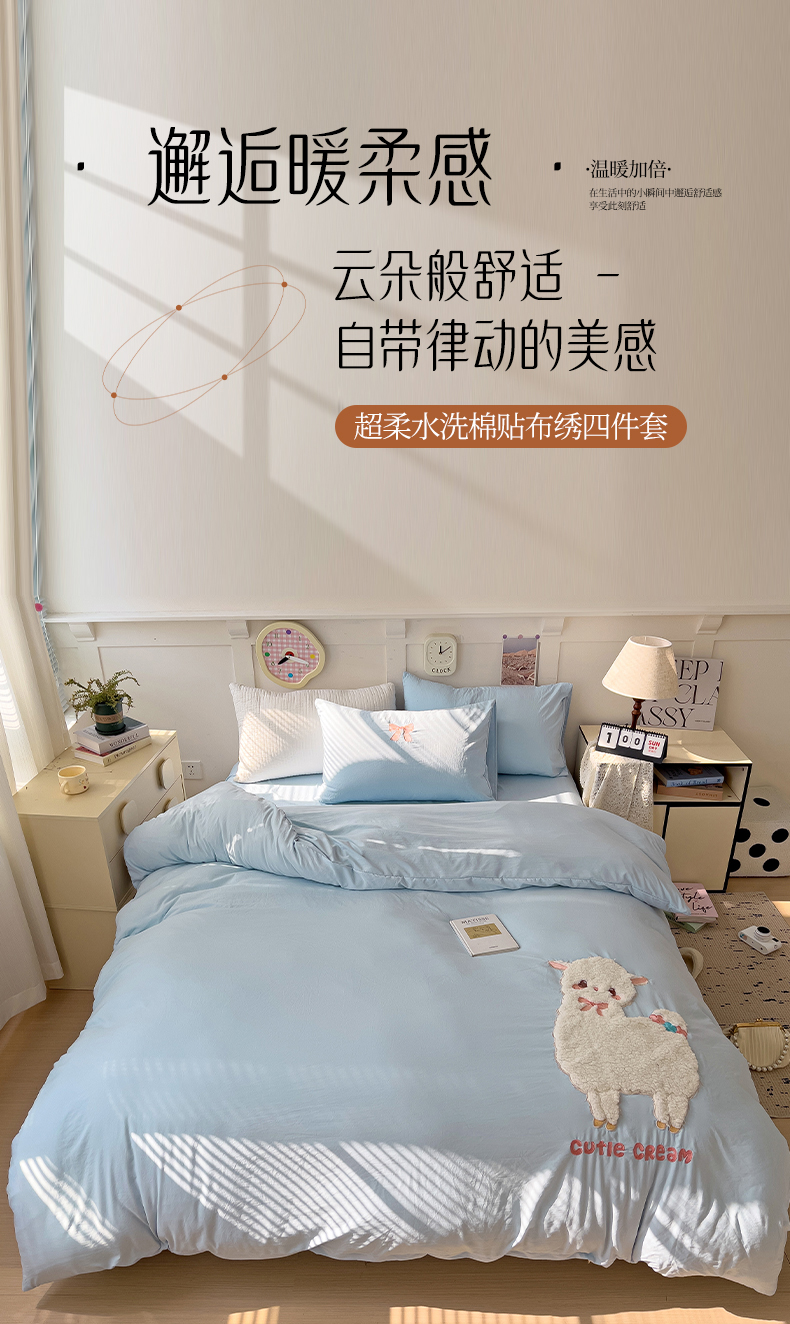 当前位置: 91家纺网 > 商品网购 > 床品套件 > 四件套 > 毛巾绣四件套 > 水墨江南 2025新款超柔水洗棉贴布绣四件套 羊小驼蓝